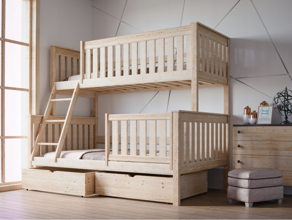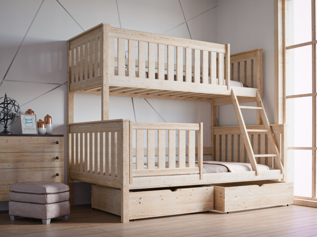 Κουκέτα Alvin Μονή – Ημίδιπλη με Συρτάρια από μασίφ ξύλο Natural 90/120×200cm (Δώρο 10% Έκπτωση στα Στρώματα)