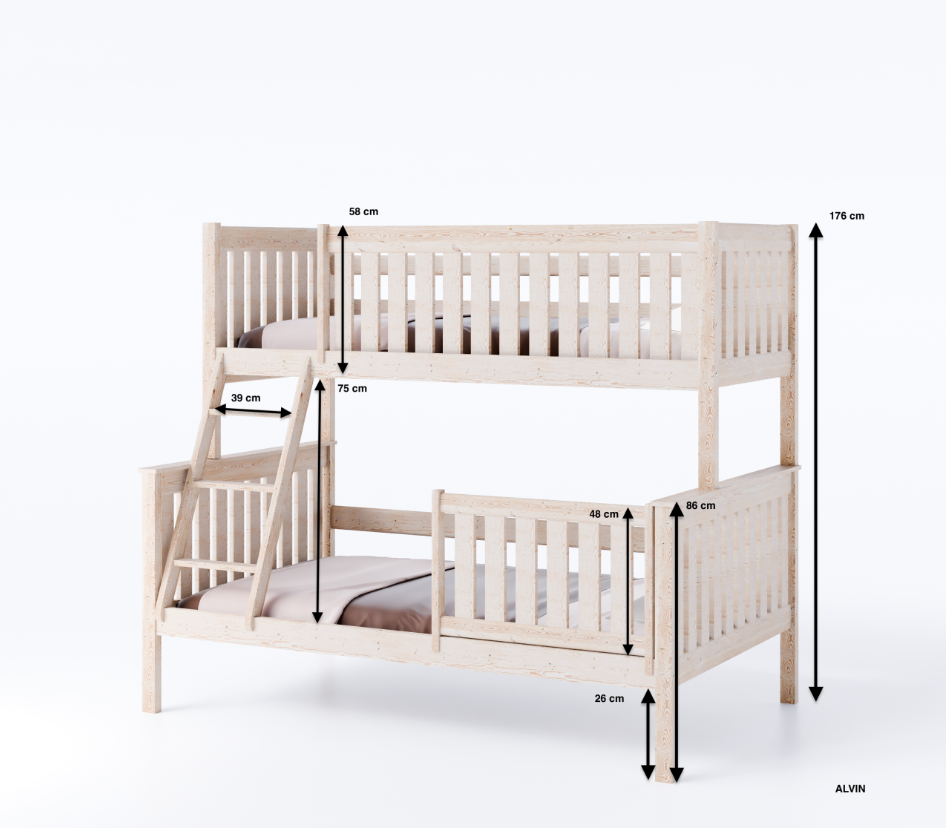 Παράλληλα, μπορείτε να μετατρέψετε την κουκέτα Alvin από μασίφ ξύλο πεύκου με ημίδιπλο κάτω κρεβάτι σε δύο μονά κρεβάτια, ώστε να καλύπτετε μελλοντικές ανάγκες ακόμη και στην ενήλικη ζωή. Έτσι, επενδύετε σε ένα έπιπλο με μεγάλη διάρκεια χρήσης και ευελιξία.