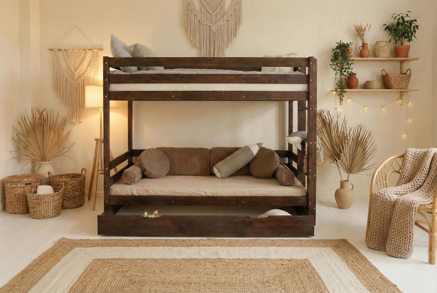 Κουκέτα Basic Plus με Οριζόντιο Κάγκελο & Συρτάρι Αποθήκευσης Dark Walnut 90×200cm Luletto (Δώρο 10% έκπτωση στα Στρώματα)