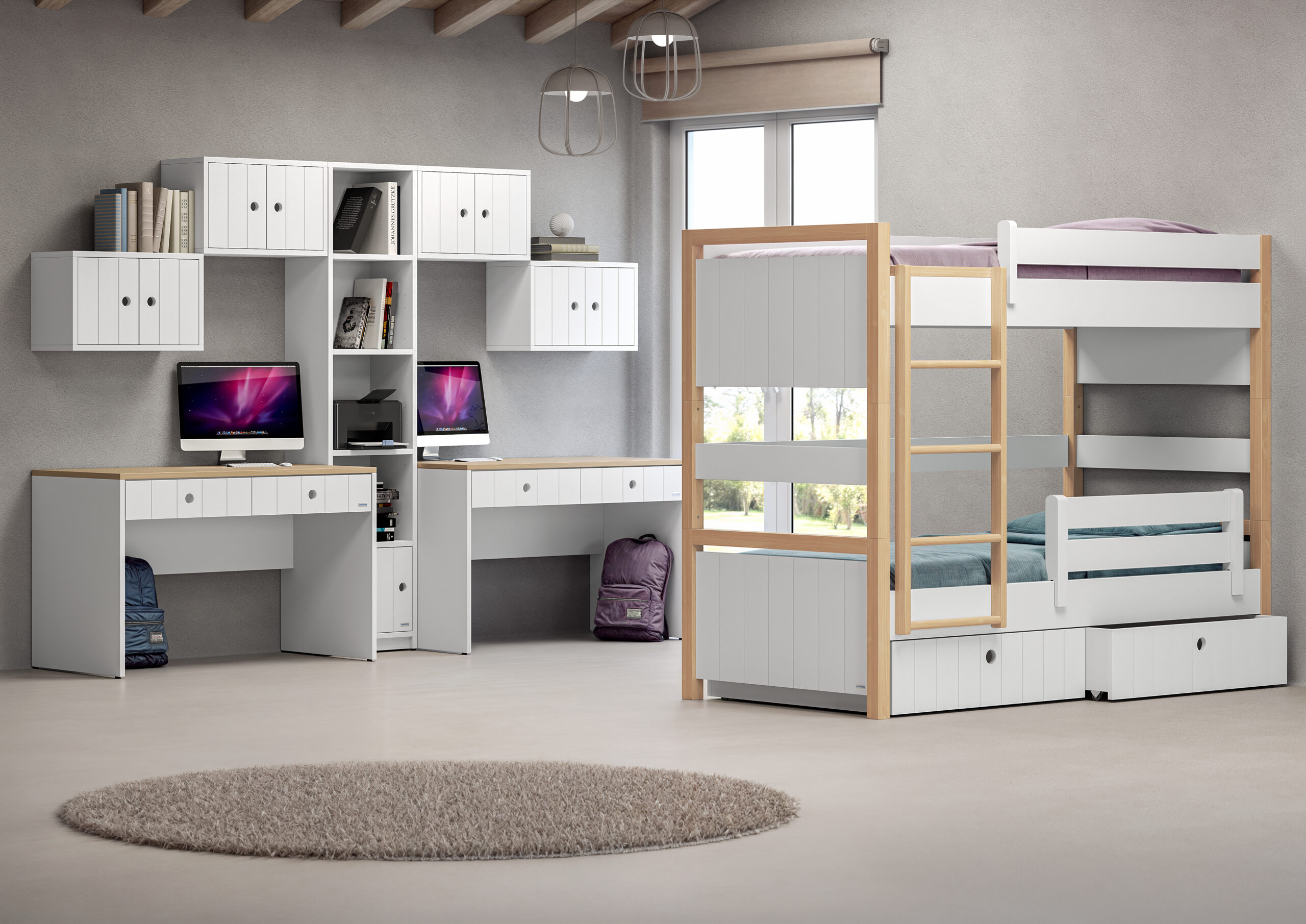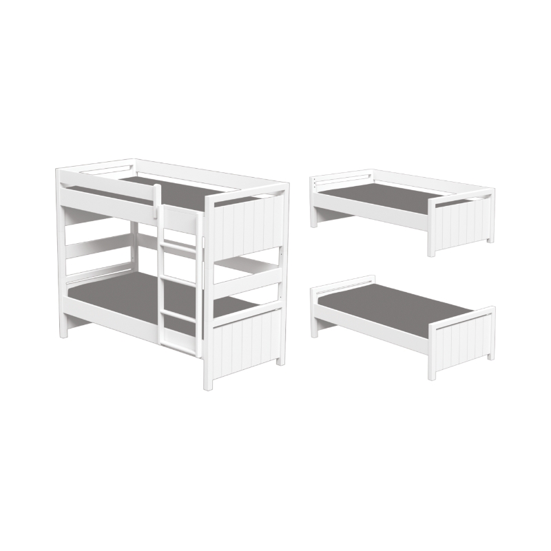 Η κουκέτα είναι διαιρούμενη και μπορεί να μετατραπεί σε δύο ανεξάρτητα κρεβάτια, καλύπτοντας τις ανάγκες του παιδιού καθώς μεγαλώνει. Κάτω από την παιδική κουκέτα Icon υπάρχει δυνατότητα τοποθέτησης αποθηκευτικών συρταριών ή πτυσσόμενου κρεβατιού, προσφέροντας πρακτικές λύσεις εξοικονόμησης χώρου.