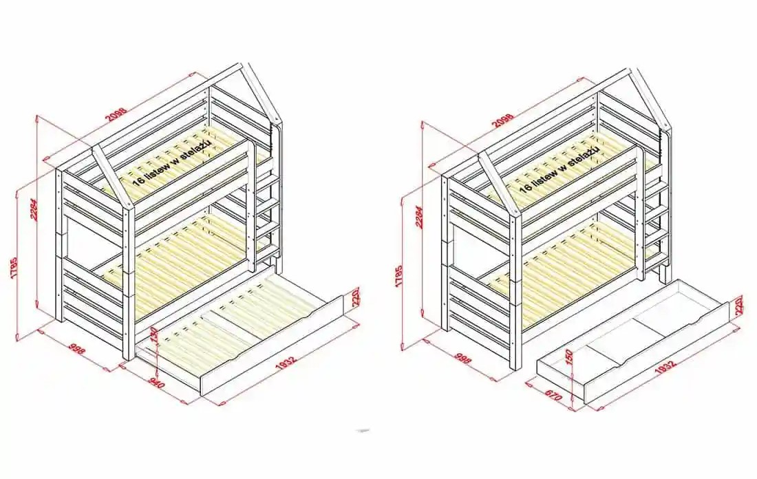 - Εξωτερική Διάσταση Κουκέτας: Μήκος 209,8cm x Πλάτος 99,8cm x Ύψος 228,4cm
