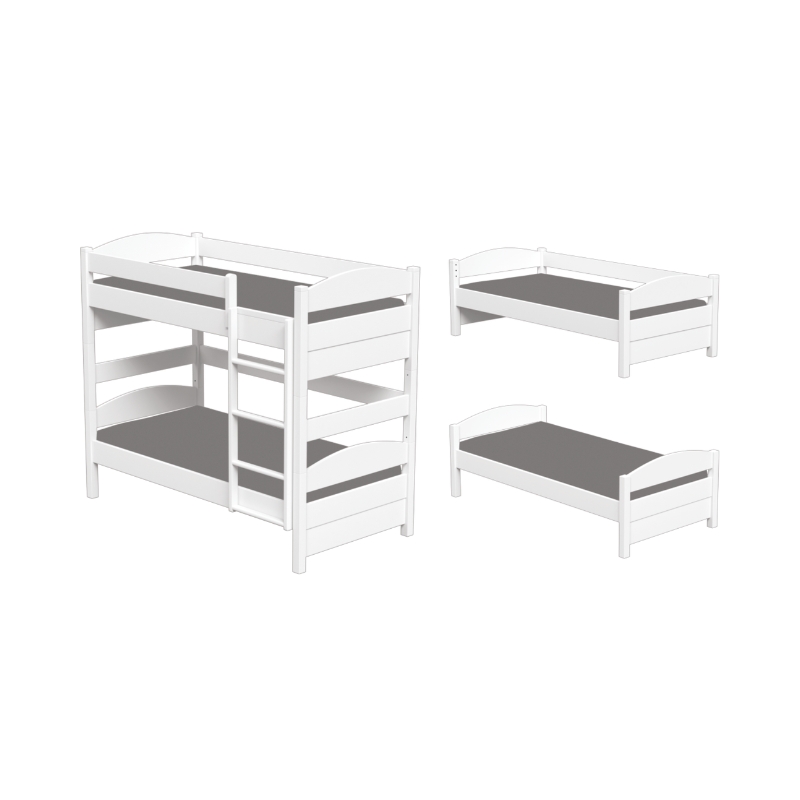 Η κουκέτα είναι διαιρούμενη και μπορεί να μετατραπεί σε δύο ανεξάρτητα κρεβάτια, καλύπτοντας τις ανάγκες του παιδιού καθώς μεγαλώνει. Κάτω από την παιδική κουκέτα Loft υπάρχει δυνατότητα τοποθέτησης αποθηκευτικών συρταριών ή πτυσσόμενου κρεβατιού, προσφέροντας επιπλέον χώρο αποθήκευσης και λειτουργικότητα.