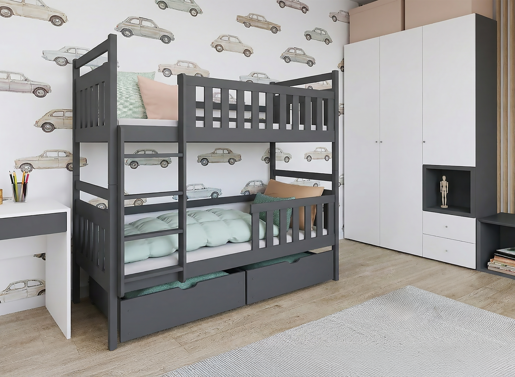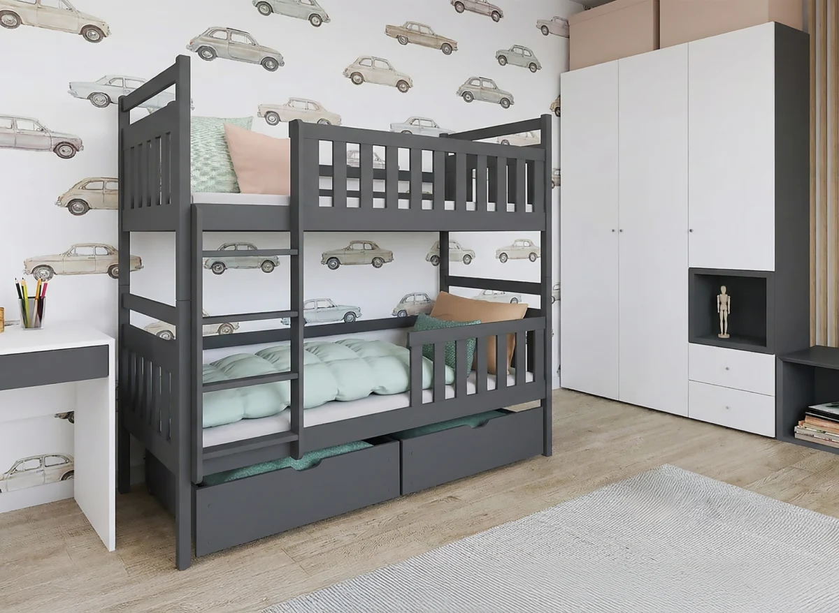 Κουκέτα Monika με Συρτάρια από μασίφ ξύλο Graphite 90×200cm (Δώρο 10% Έκπτωση στα Στρώματα)
