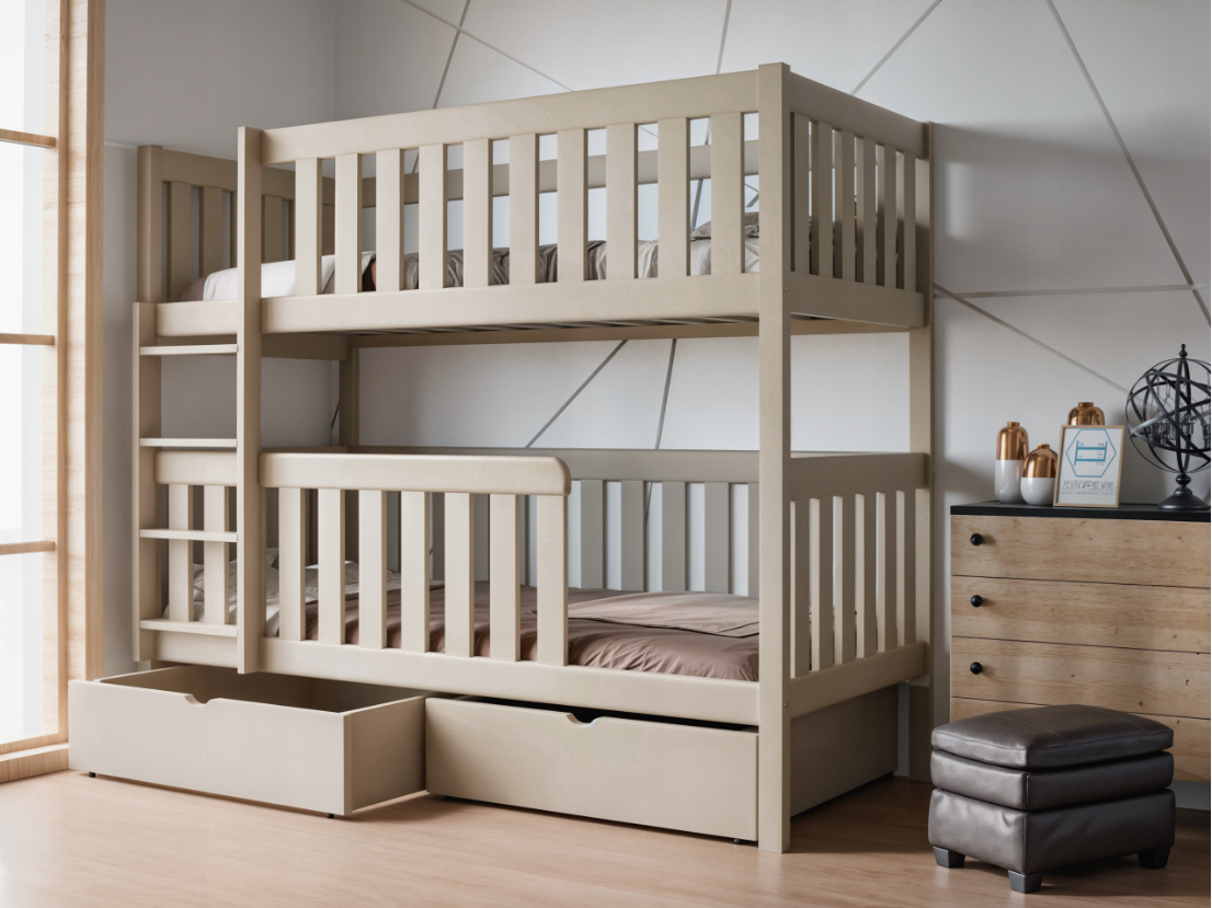 Επιπλέον, η κουκέτα Olga διαθέτει πρακτικά συρτάρια αποθήκευσης, ώστε να οργανώνετε εύκολα ρούχα, παιχνίδια και κλινοσκεπάσματα. Ταυτόχρονα, μπορείτε να επιλέξετε το μοντέλο με πορτούλα ή χωρίς πορτούλα, ανάλογα με τις ανάγκες ασφάλειας και λειτουργικότητας.