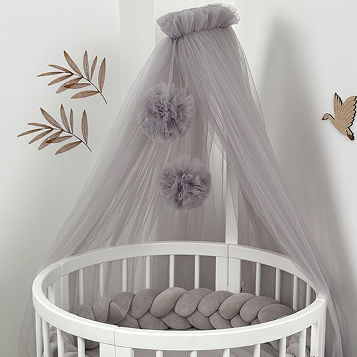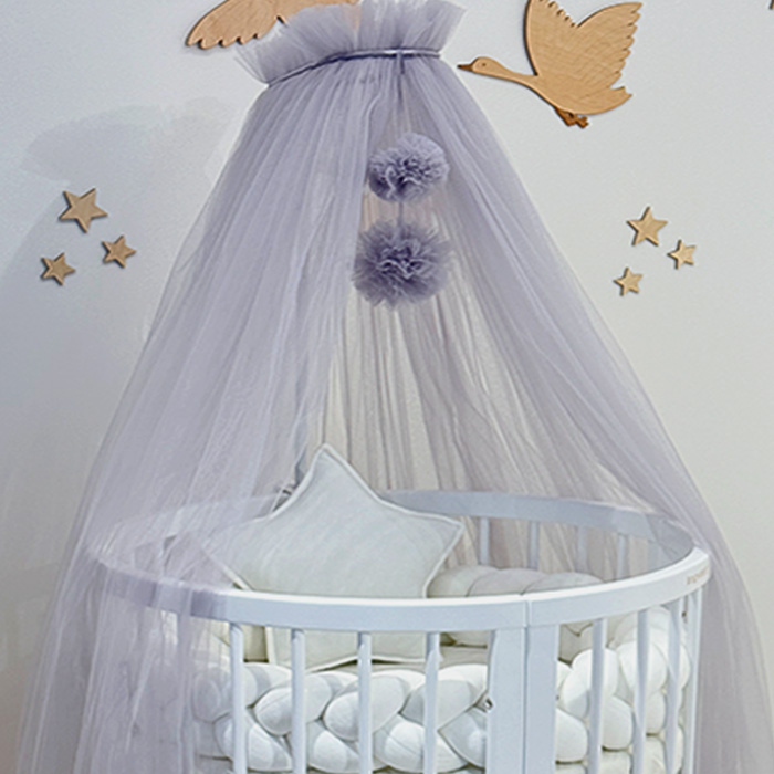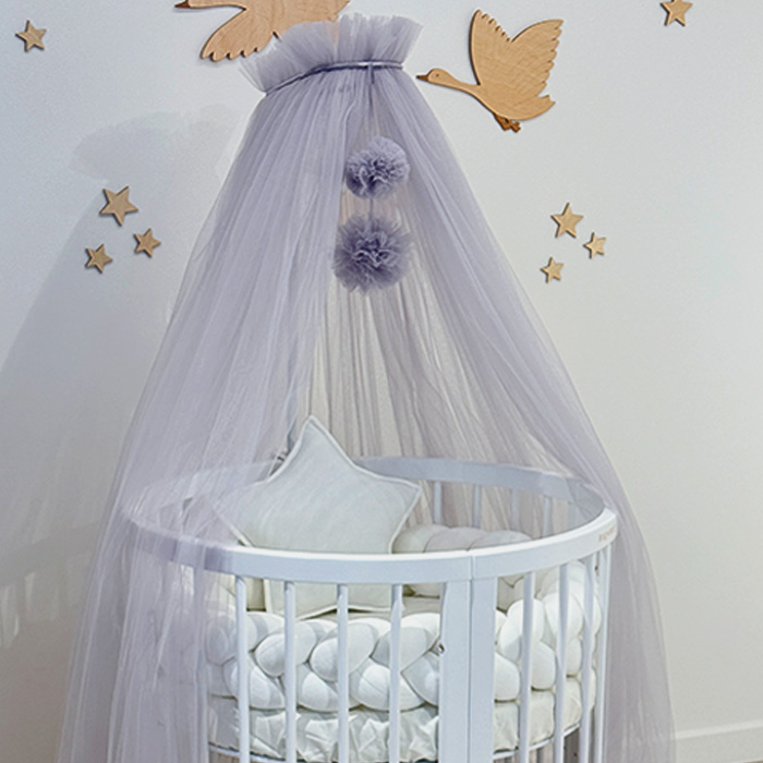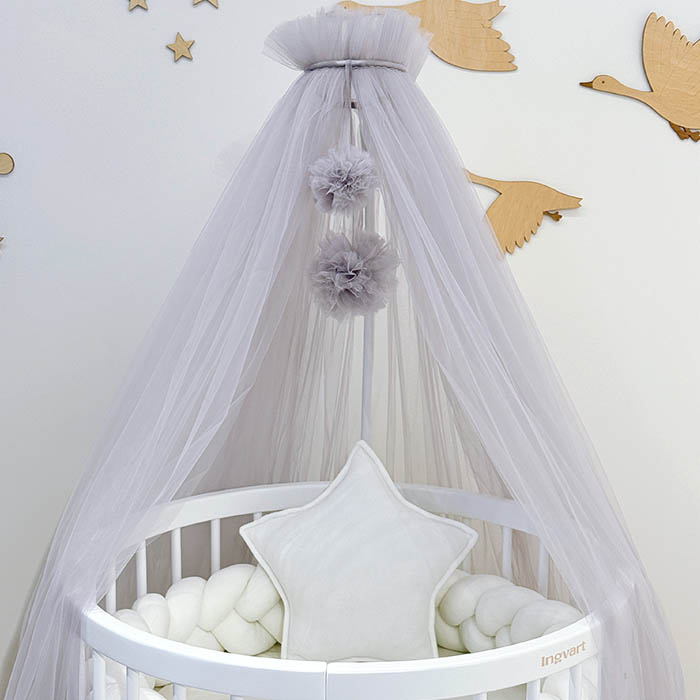 Κουνουπιέρα τούλι με Pom Pom & Βάση Κουνουπιέρας Grey Ingvart