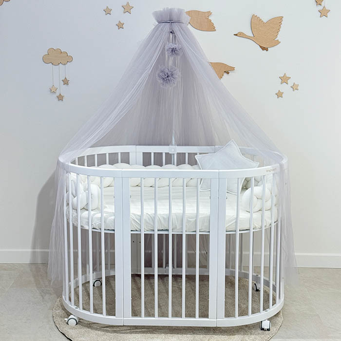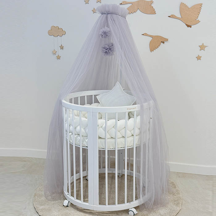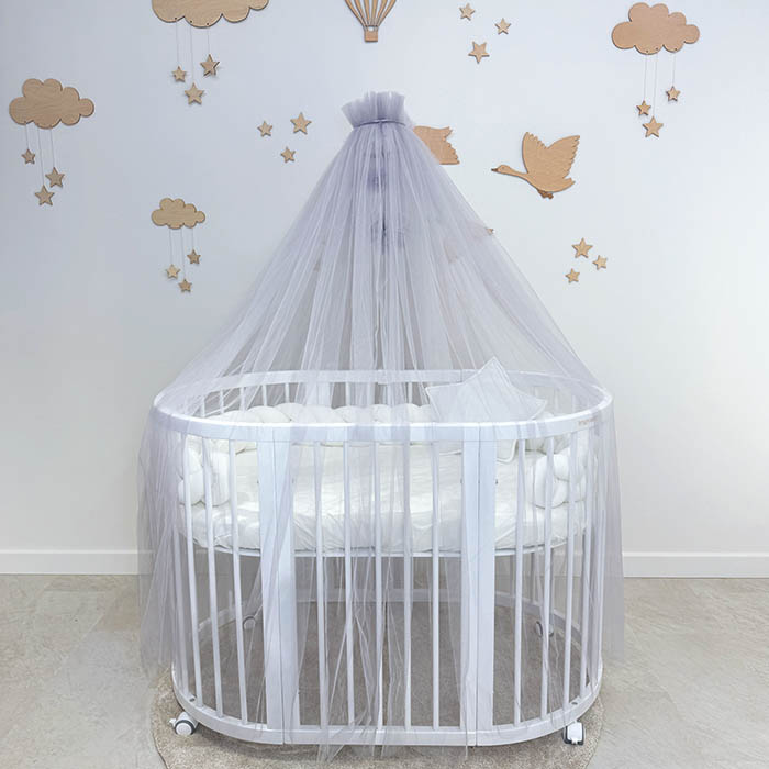 Κατασκευασμένο από λεπτό εξαγωνικό, ελαφρύ πλέγμα. Η τεχνολογία πλεξίματος αναπτύχθηκε από ειδικούς στον τομέα των παιδικών ειδών. Χάρη σε αυτή την προσέγγιση, το κουβούκλιο επιτρέπει την εύκολη διέλευση του αέρα, προστατεύοντας τον ύπνο του μωρού σας από τα έντομα. Η επαρκής διαφάνεια σάς επιτρέπει να παρατηρείτε το παιδί. Χάρη στο ελαφρύ ύφασμα δημιουργείται μια ιδιαίτερη απαλή ατμόσφαιρα στο παιδικό δωμάτιο. Συνιστάται να πλένετε την κουνουπιέρα με τρόπους πλύσης, «ευαίσθητα» σε θερμοκρασία 30–40 ° C. Το πλύσιμο συνιστάται με μαλακτικό. Απορρυπαντικά που περιέχουν λευκαντικούς παράγοντες και χλώριο μπορεί να βλάψουν το ύφασμα, επομένως απαγορεύεται η χρήση τους καθώς και το στεγνό καθάρισμα!
