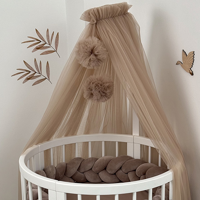 Κουνουπιέρα τούλι με Pom Pom & Βάση Κουνουπιέρας Cappuccino Ingvart