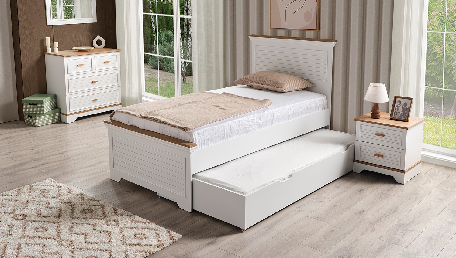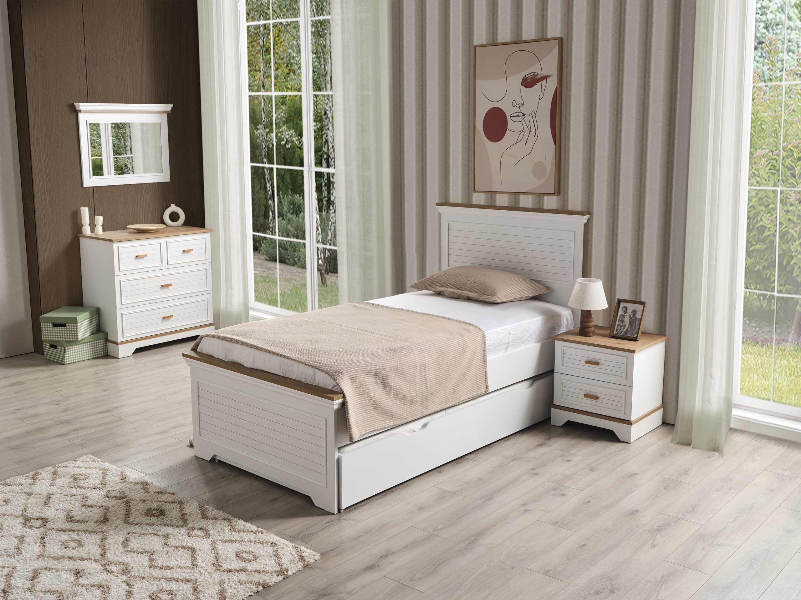 - Εξωτερικές διαστάσεις κρεβατιού: Μ210xΠ132xΥ120 cm