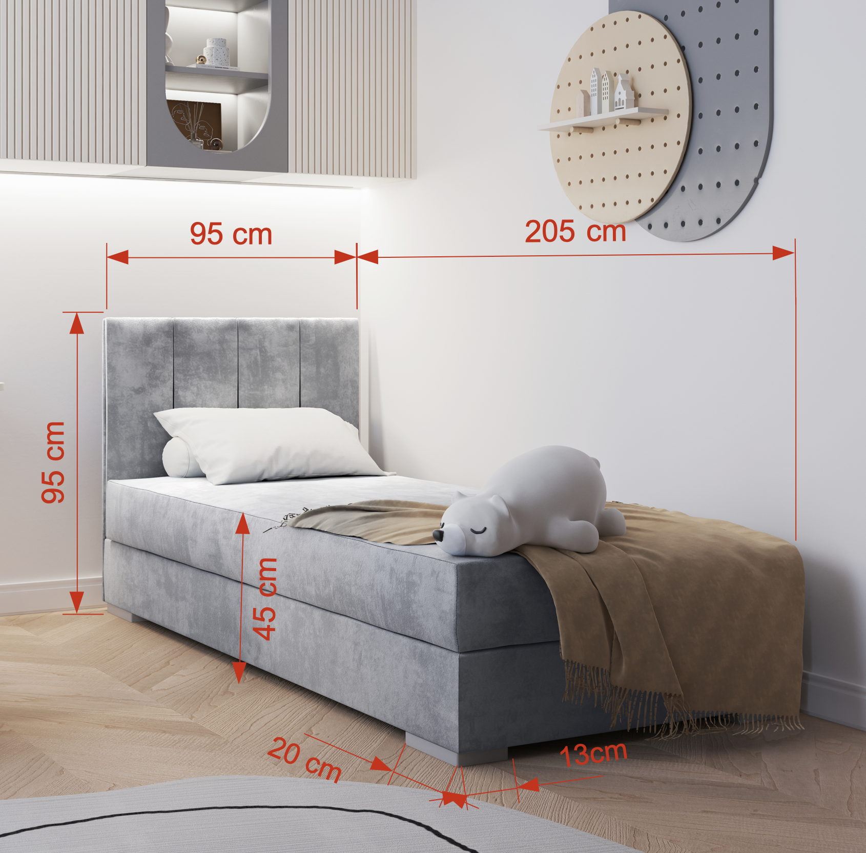 - Εξωτερική Διάσταση Κρεβατιού: Μήκος 205cm x Πλάτος 95cm x Ύψος 95cm