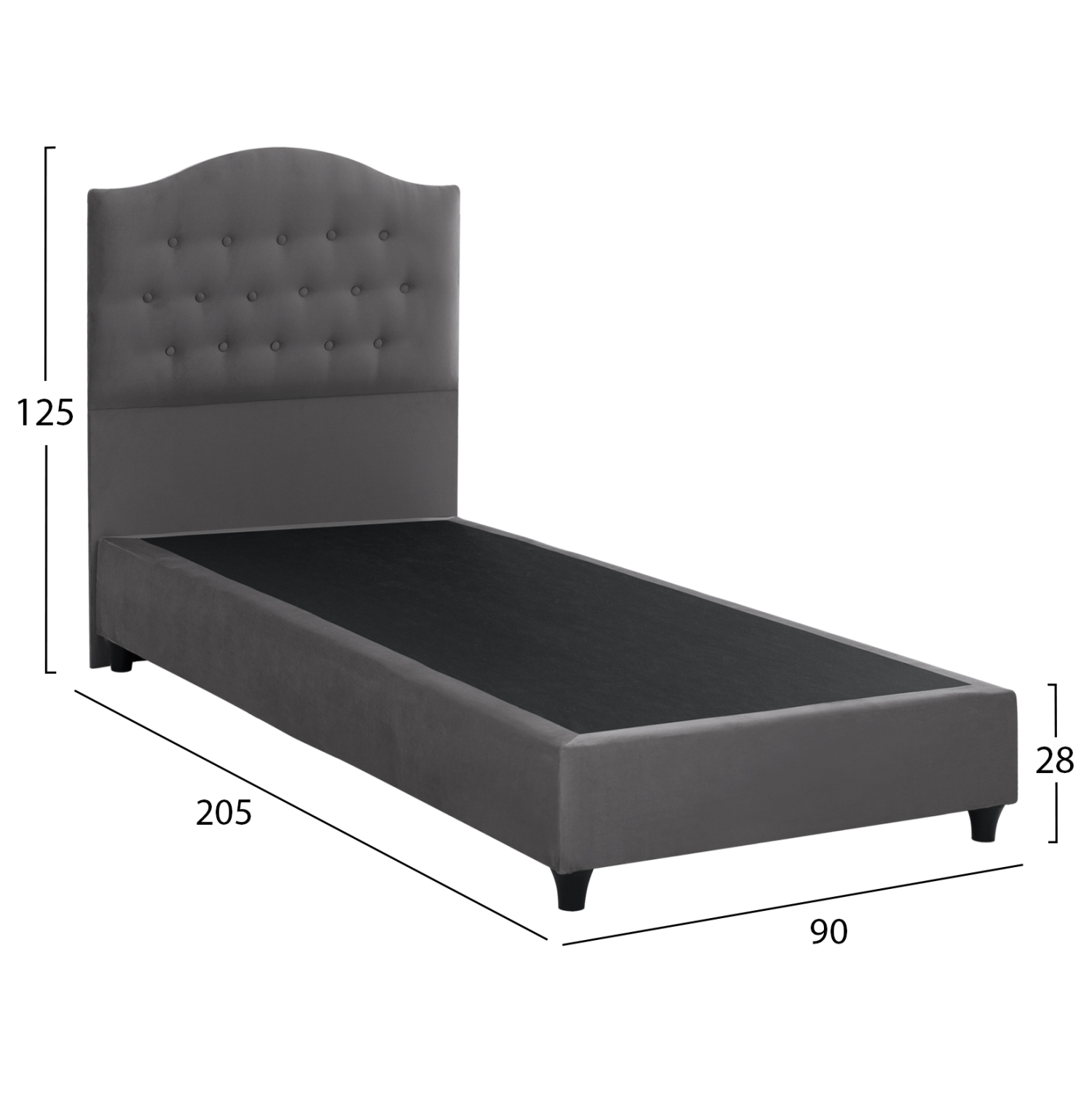 - Εξωτερική Διάσταση Κρεβατιού: Μήκος 205cm x Πλάτος 90cm x Ύψος 125 cm