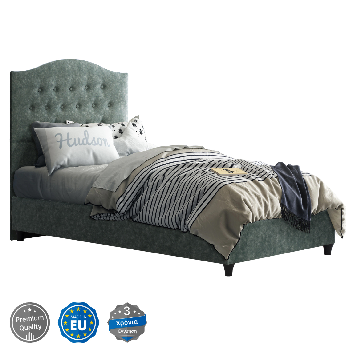 Κρεβάτι Μονό 90x200cm Malena Επενδεδυμένο με Ύφασμα τ. Nubuk Πράσινο 0509708 (Δώρο 10% έκπτωση στο Στρώμα)
