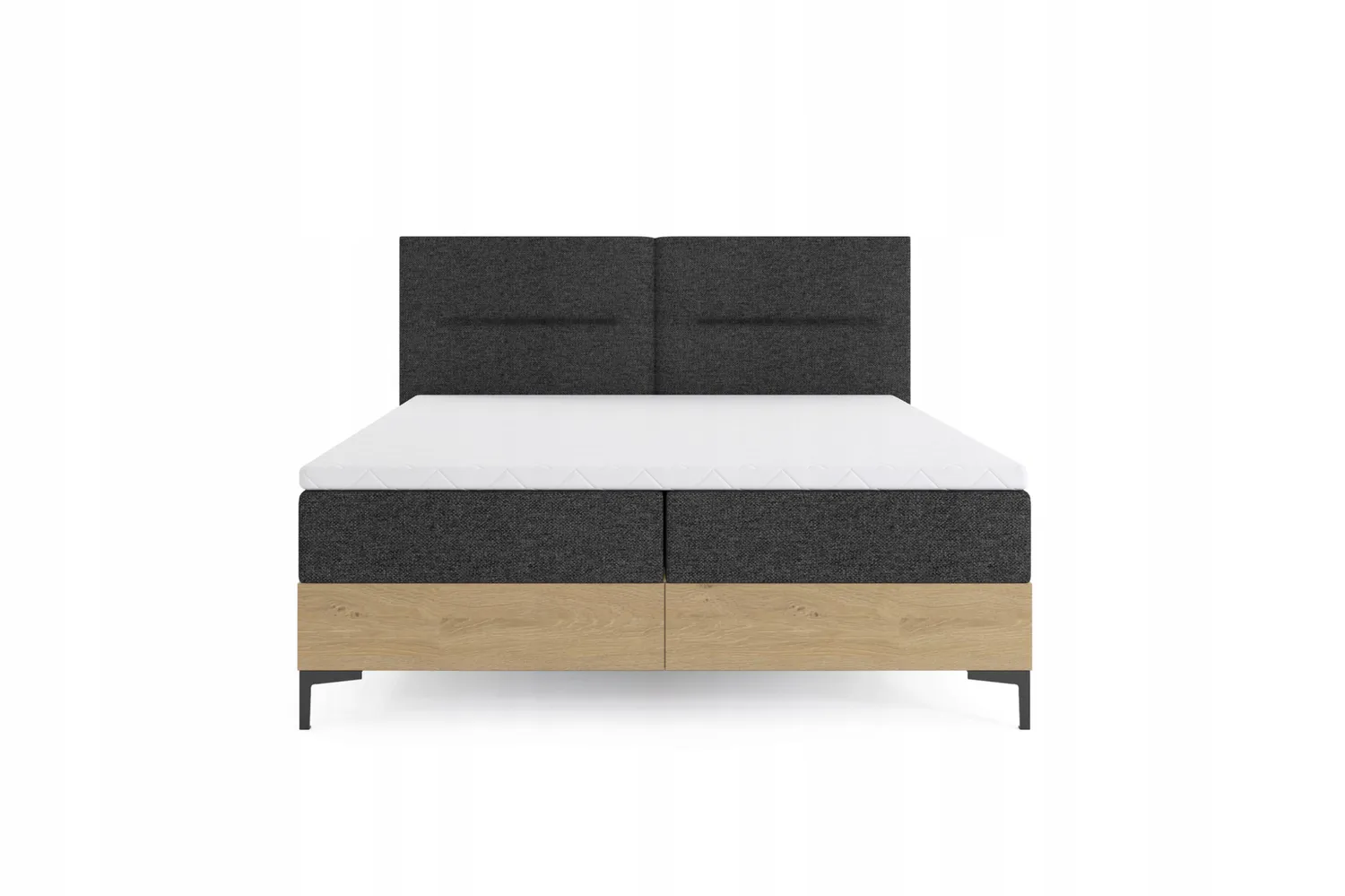 Παράλληλα, το ταπετσαρισμένο κεφαλάρι προσφέρει άνετη στήριξη και ενισχύει τη μοντέρνα εικόνα του κρεβατιού. Τα δύο στρώματα, κατασκευασμένα από αφρό υψηλής ανθεκτικότητας και επενδυμένα με ποιοτικό ύφασμα, εξασφαλίζουν άνεση και σταθερότητα. Το απαλό τους χρώμα ταιριάζει τόσο σε ανοιχτόχρωμους όσο και σε σκούρους χώρους, δημιουργώντας ισορροπημένη και ζεστή ατμόσφαιρα.