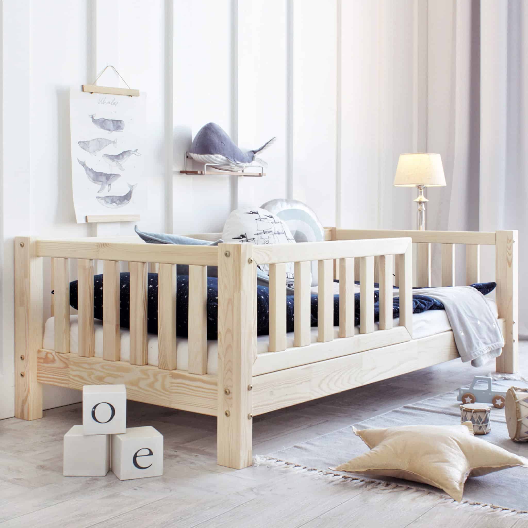 Κρεβάτι Παιδικό Montessori Bianco Fast με κάγκελα 30cm Natural 80×160cm (Πόδια 10cm) Luletto (Δώρο 10% έκπτωση στο Στρώμα)