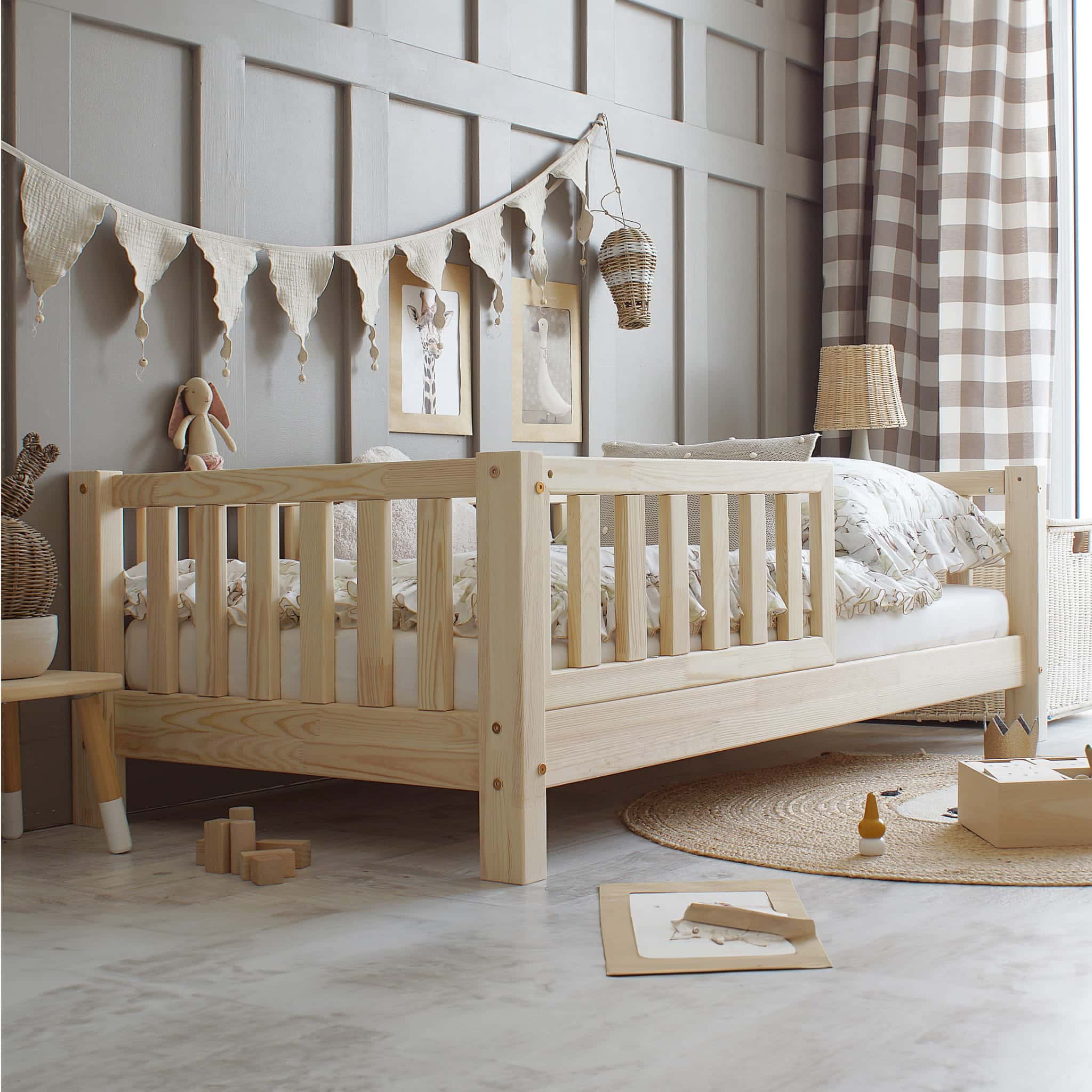 Κρεβάτι Παιδικό Montessori Bianco Fast με κάγκελα 30cm Natural 90×190cm (Πόδια 10cm) Luletto (Δώρο 10% έκπτωση στο Στρώμα)