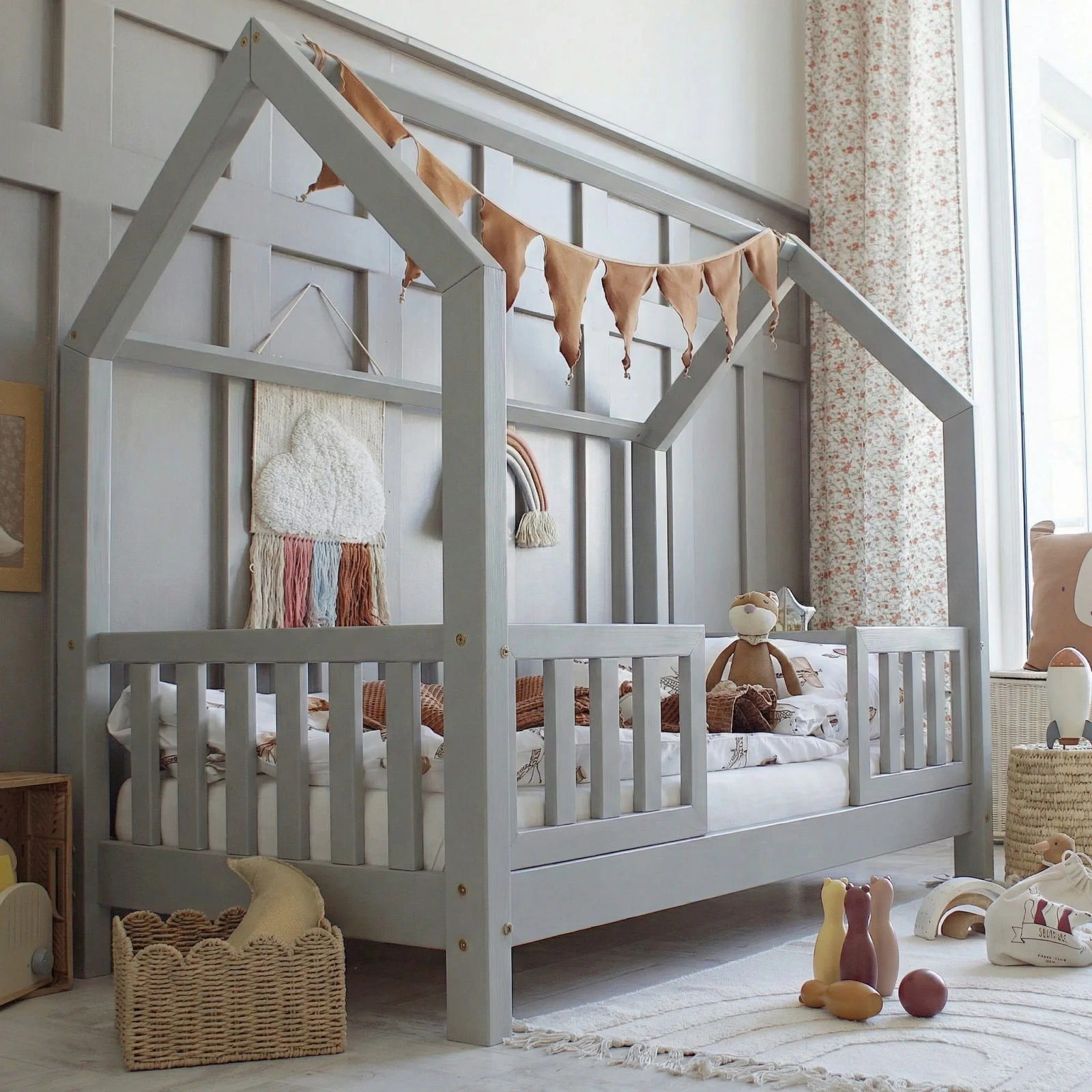 Ο ιδιαίτερος σχεδιασμός σε μορφή σπιτιού δημιουργεί ένα ζεστό και φιλικό περιβάλλον, μετατρέποντας το κρεβάτι σε έναν χώρο όχι μόνο για ύπνο αλλά και για παιχνίδι, χαλάρωση και δημιουργική απασχόληση.