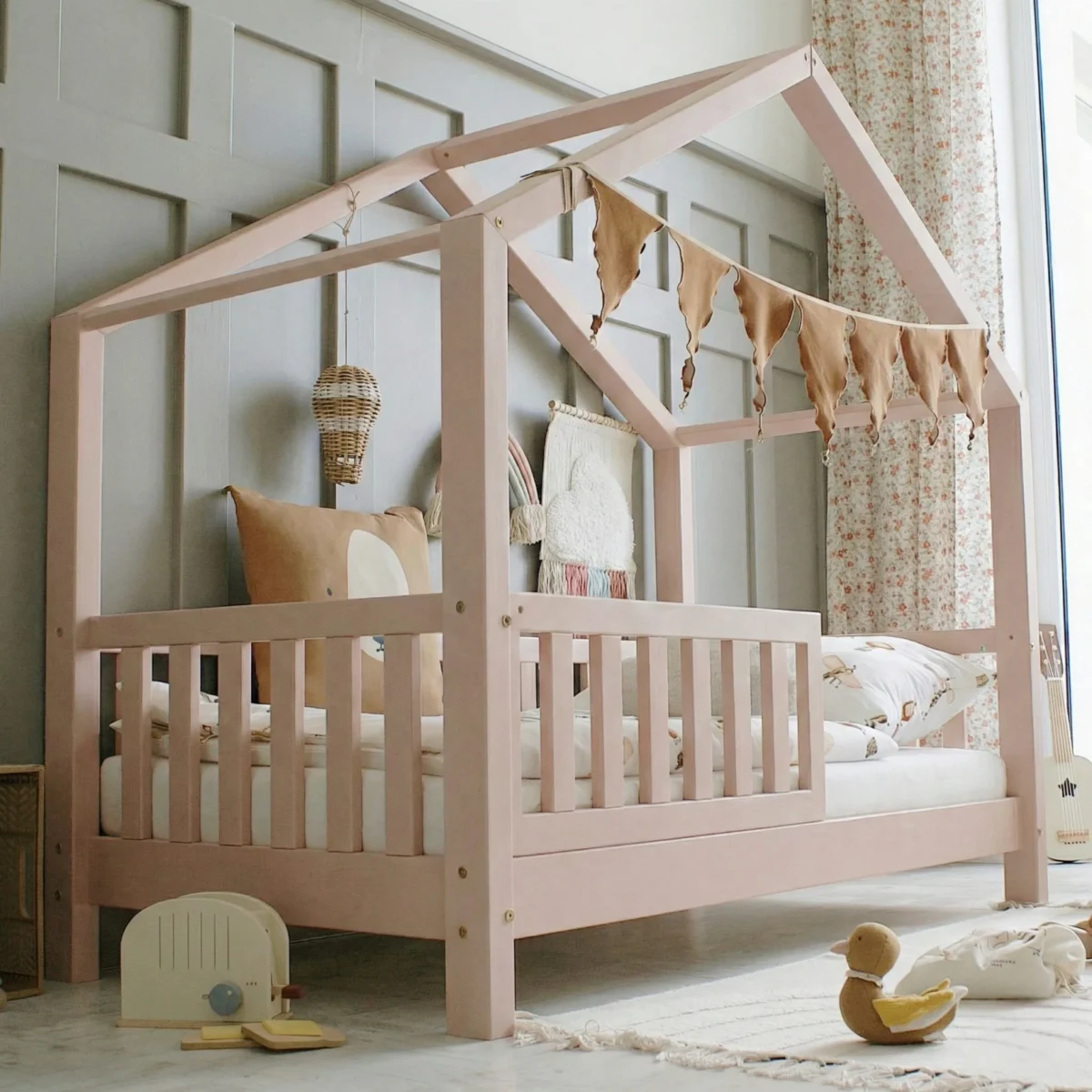 Κρεβάτι Παιδικό Montessori House Bed με κάγκελα 30cm 120×200cm Retro Pink Luletto (Δώρο 10% έκπτωση στο Στρώμα)