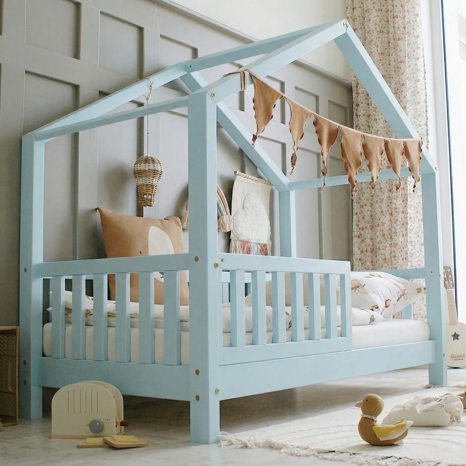 Κρεβάτι Παιδικό Montessori House Bed με κάγκελα 30cm 90×200cm Blue Luletto (Δώρο 10% έκπτωση στο Στρώμα)