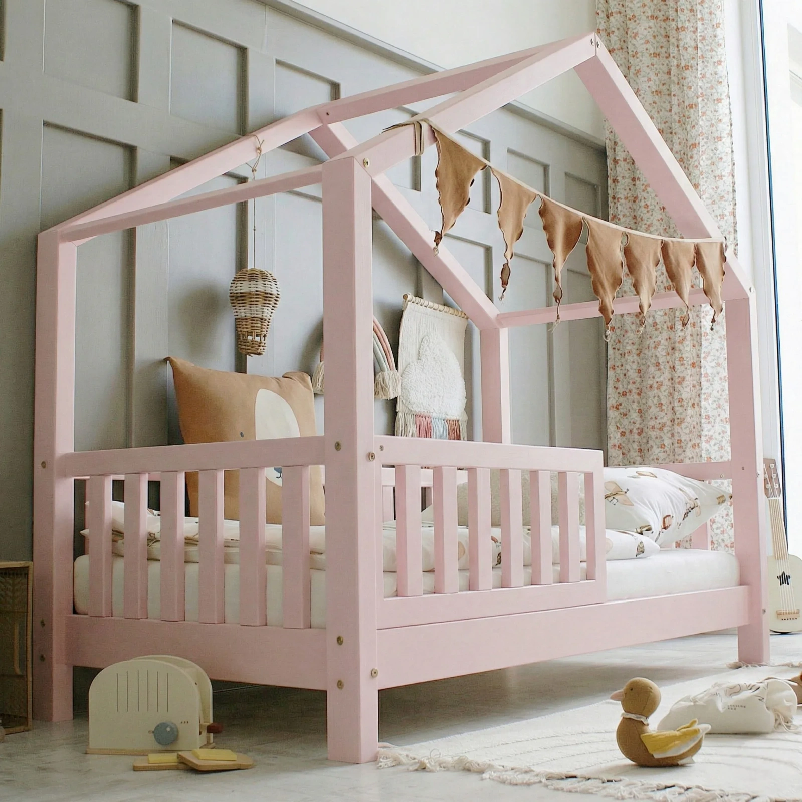Το Κρεβάτι Montessori House Bed Pink είναι ένα χαμηλό παιδικό κρεβάτι σε σχέδιο σπιτιού, βασισμένο στη φιλοσοφία Montessori, που ενθαρρύνει το παιδί να αυτοεξυπηρετείται και να κινείται ελεύθερα από μικρή ηλικία.