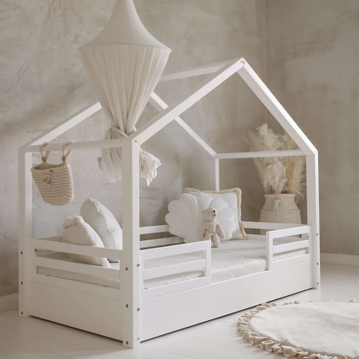 Ο σχεδιασμός τύπου σπιτάκι δημιουργεί έναν ζεστό και παιχνιδιάρικο χώρο ύπνου, ιδανικό για παιδικά δωμάτια, ενώ μπορεί εύκολα να διακοσμηθεί με φωτάκια ή υφάσματα.