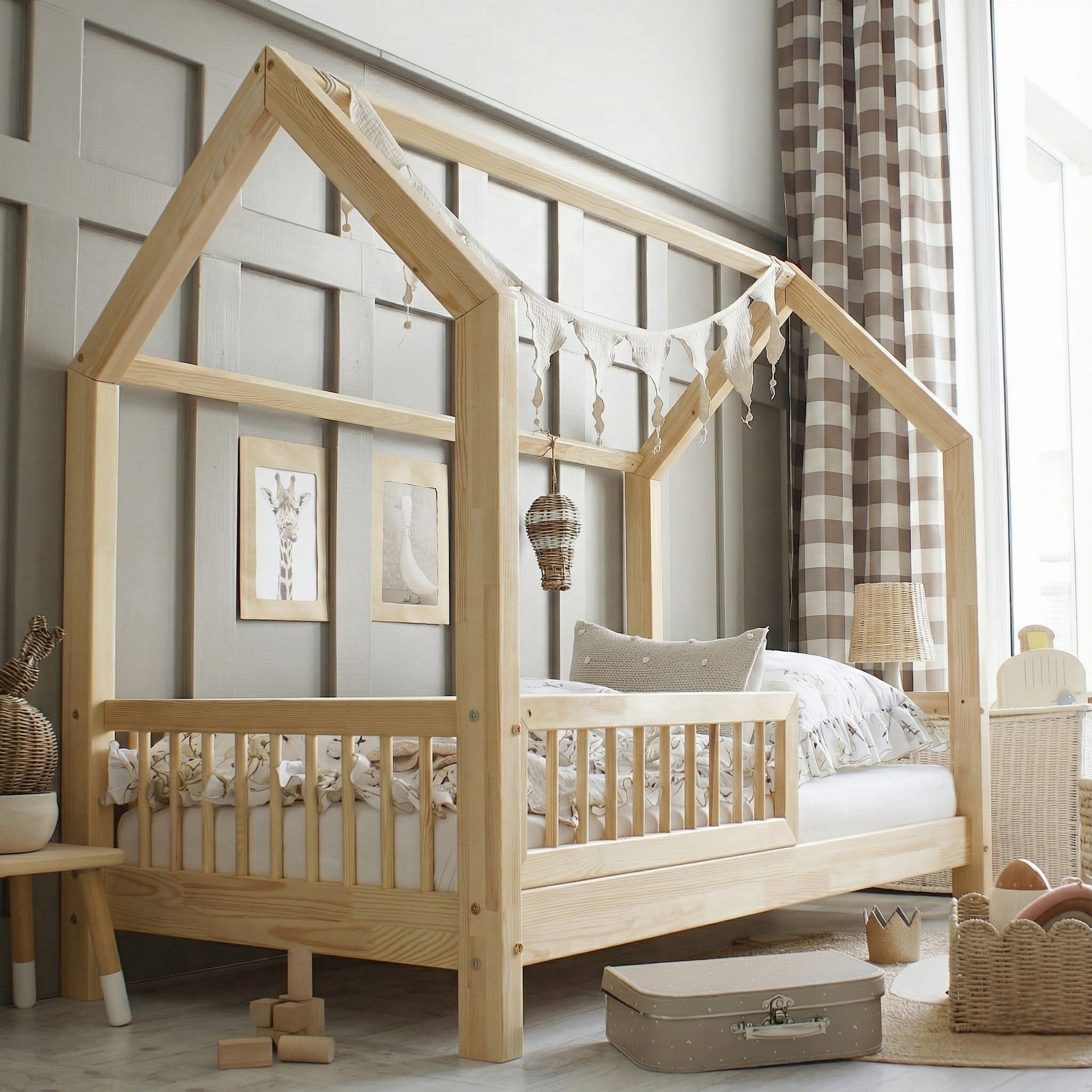 Το κρεβάτι Montessori Piola σπιτάκι είναι σχεδιασμένο για την αυτονομία του παιδιού, σύμφωνα με τη φιλοσοφία Montessori. Κατασκευασμένο από μασίφ ξύλο πεύκου υψηλής ποιότητας, το κρεβάτι σπιτάκι διαθέτει χαμηλό ύψος, αφαιρούμενο μπροστινό κάγκελο, στρογγυλεμένες γωνίες και στιβαρή κατασκευή.