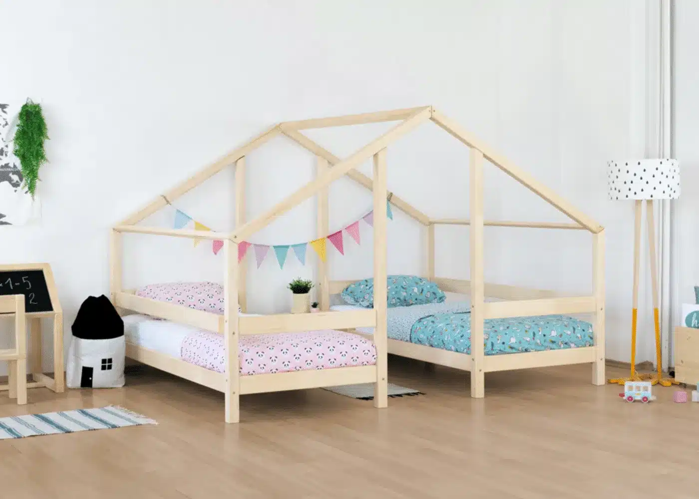 Κρεβάτι Σπιτάκι για 2 παιδιά Montessori Twin από μασίφ ξύλο Natural 90×200cm