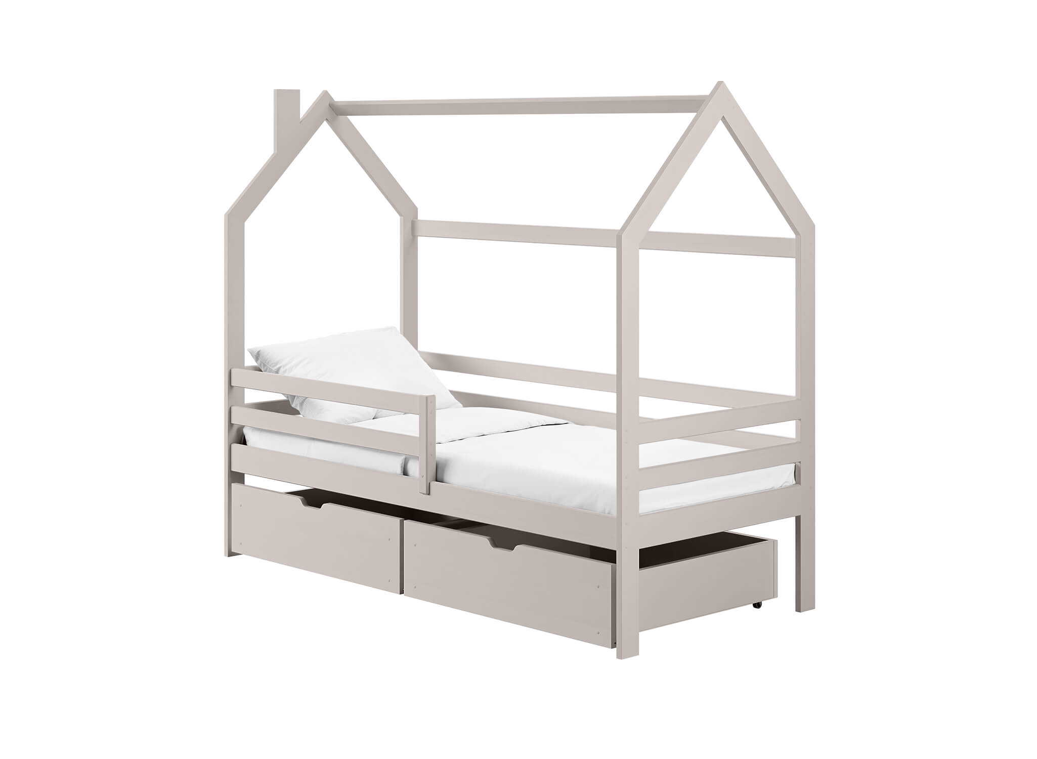 Παράλληλα, το Κρεβάτι Σπιτάκι Lila συνδυάζει αισθητική και λειτουργικότητα, καθώς προσφέρει ένα άνετο και ασφαλές περιβάλλον ύπνου. Επιπλέον, η κατασκευή από μασίφ ξύλο εξασφαλίζει αντοχή και σταθερότητα, ώστε το παιδί να απολαμβάνει ξεκούραστο ύπνο κάθε βράδυ.