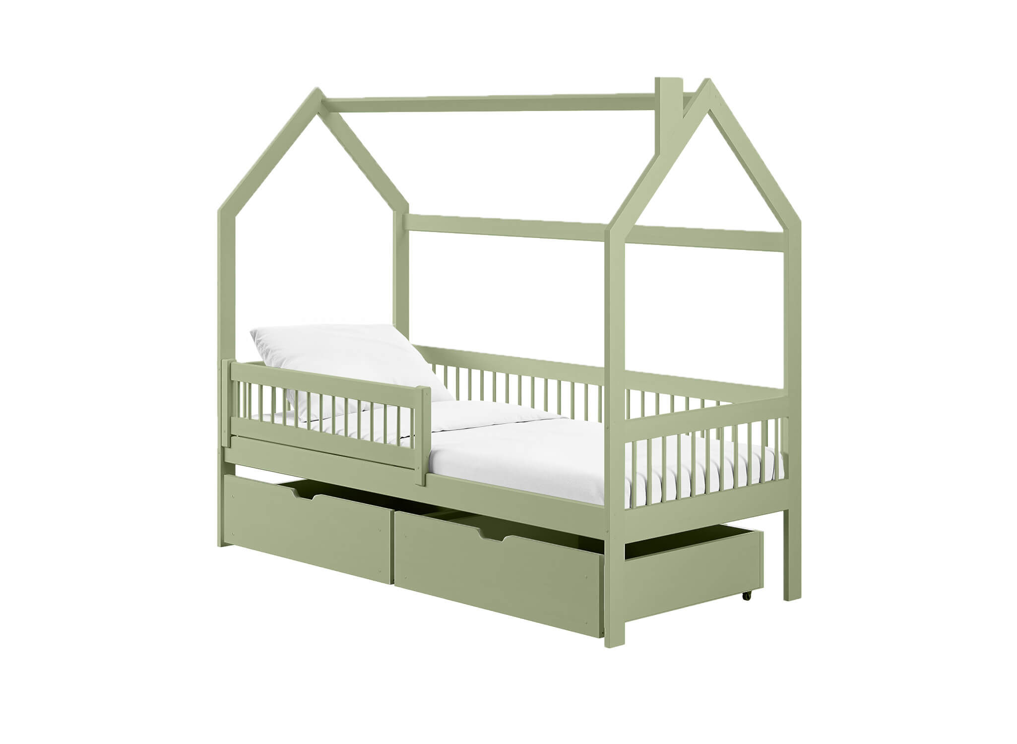 Κρεβάτι Σπιτάκι Natan με Σκεπή & Καμινάδα από μασίφ ξύλο Olive 90×200cm (Δώρο 10% Έκπτωση στo Στρώμα)