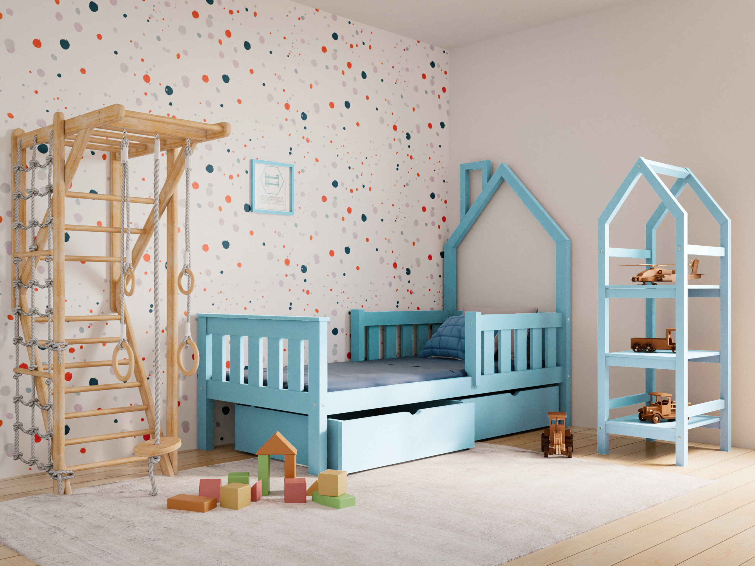 Το κρεβάτι σπιτάκι Aga Blue με Συρτάρια δίνει στο παιδικό δωμάτιο έναν ξεχωριστό χαρακτήρα, καθώς δεν προσφέρει μόνο έναν άνετο χώρο ύπνου, αλλά και ένα περιβάλλον παιχνιδιού και χαλάρωσης. Παράλληλα, ο σχεδιασμός σε μορφή σπιτιού ενθουσιάζει τα παιδιά και τα προσκαλεί να ονειρευτούν και να δημιουργήσουν.