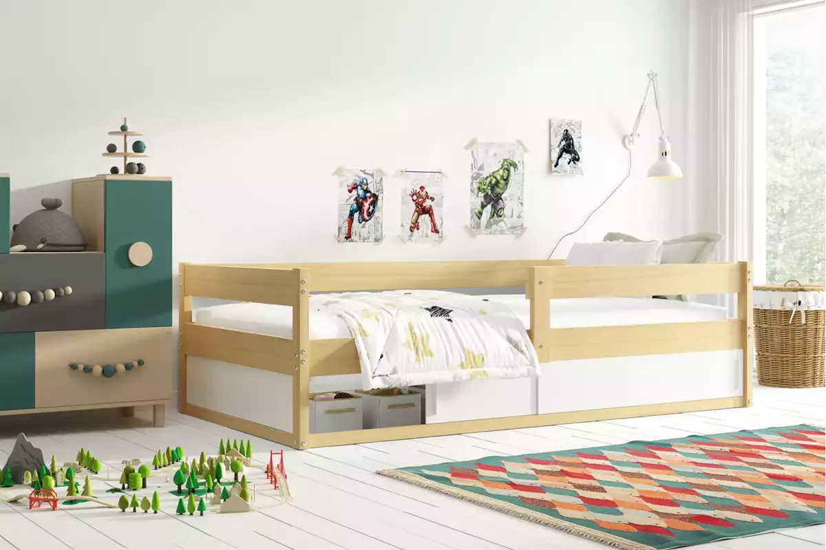 Παράλληλα, ο προστατευτικός σχεδιασμός με πλαϊνά κάγκελα ενισχύει την ασφάλεια κατά τη διάρκεια του ύπνου, ώστε το παιδί να ξεκουράζεται άνετα και με σιγουριά. Επιπλέον, η χαμηλή κατασκευή επιτρέπει εύκολη πρόσβαση, ενισχύοντας την αυτονομία του παιδιού στην καθημερινότητά του.