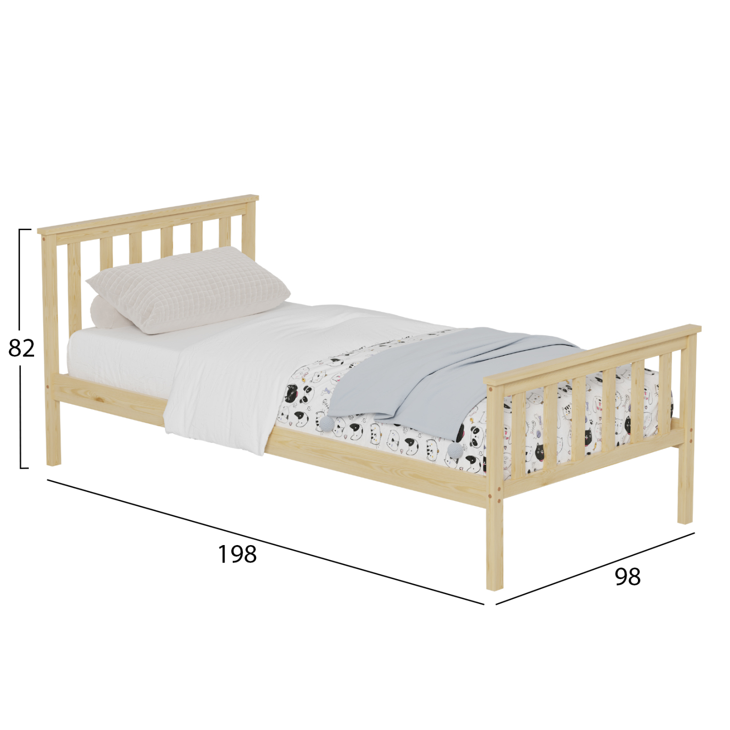 - Εξωτερική Διάσταση Κρεβατιού: Μήκος 198cm x Πλάτος 98cm x Ύψος 82cm
