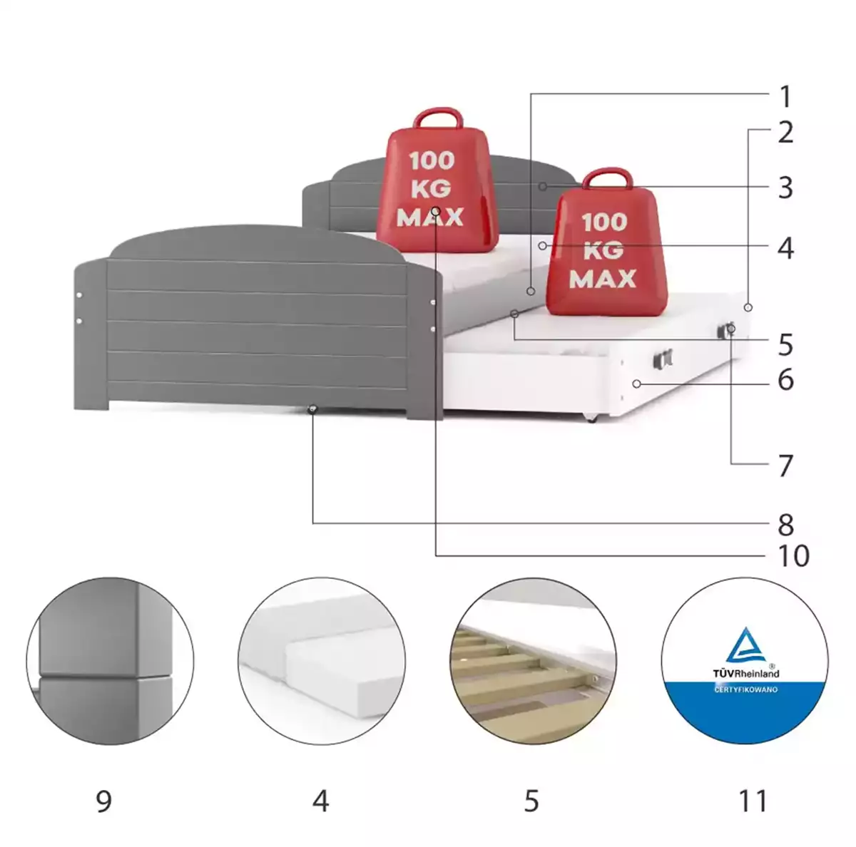 Το Κρεβάτι Lili Grey & White 90×200 με Συρτάρι Αποθήκευσης ή Ύπνου συνδυάζει λειτουργικότητα και διαχρονικό σχεδιασμό, ενώ παράλληλα προσφέρει πρακτική λύση οργάνωσης για παιδικό, εφηβικό ή και φιλοξενούμενο δωμάτιο.