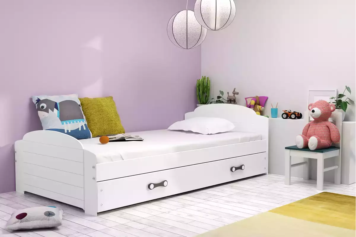 Το Κρεβάτι Lili White 90×200 με Συρτάρι Αποθήκευσης ή Ύπνου συνδυάζει λειτουργικότητα και διαχρονικό σχεδιασμό, ενώ παράλληλα προσφέρει πρακτική λύση οργάνωσης για παιδικό, εφηβικό ή και φιλοξενούμενο δωμάτιο.