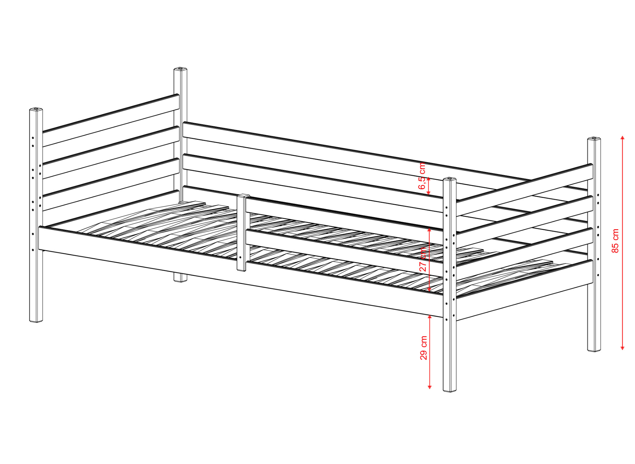 - Διάσταση στρώματος: 80x160cm – Εξωτερική διάσταση κρεβατιού 87x168cm