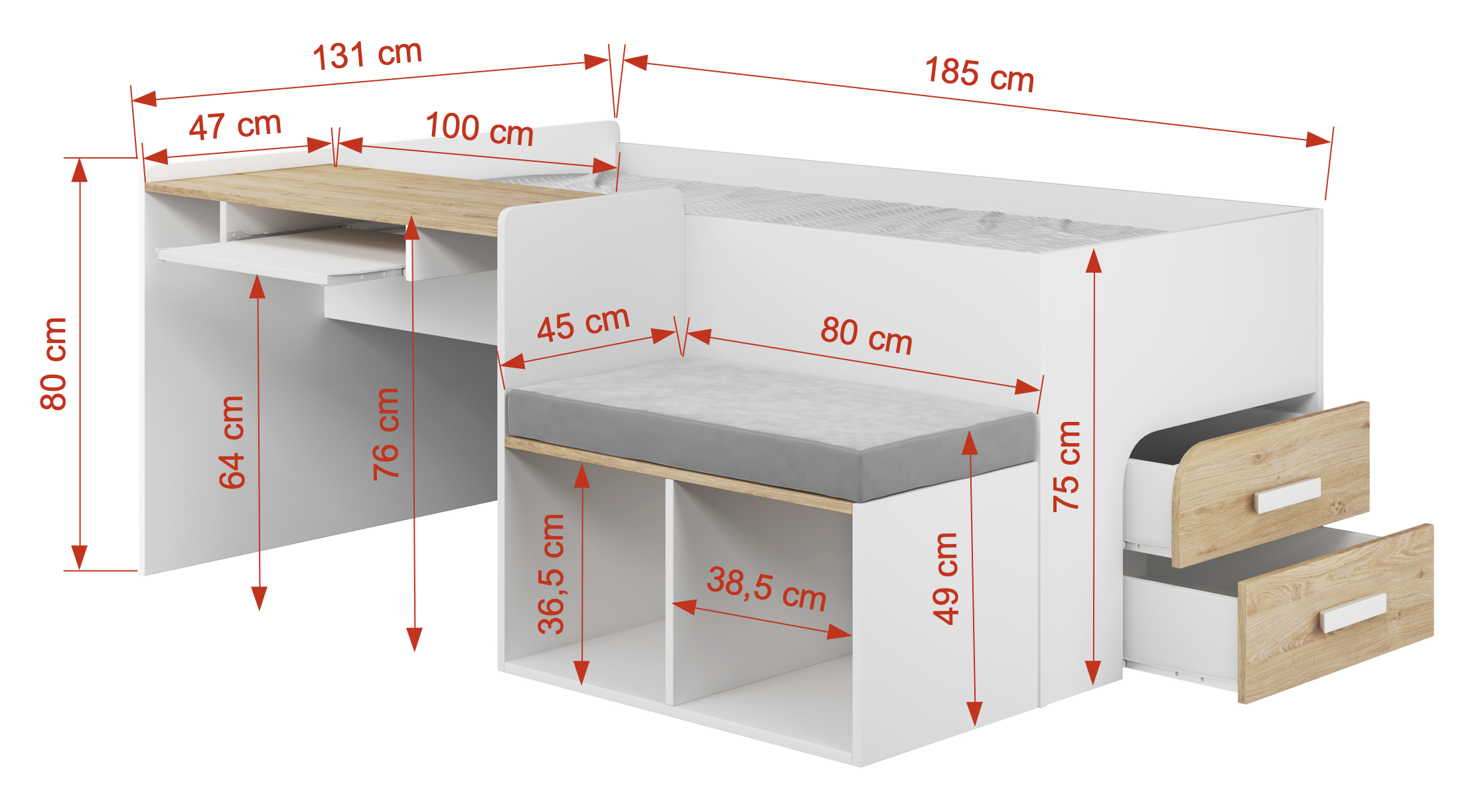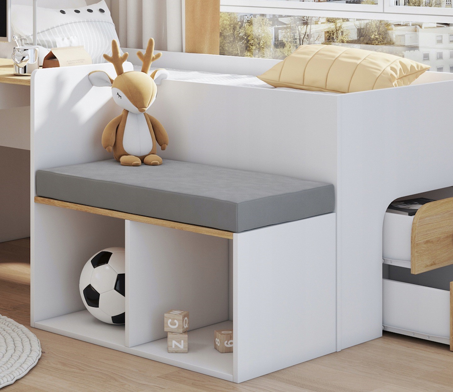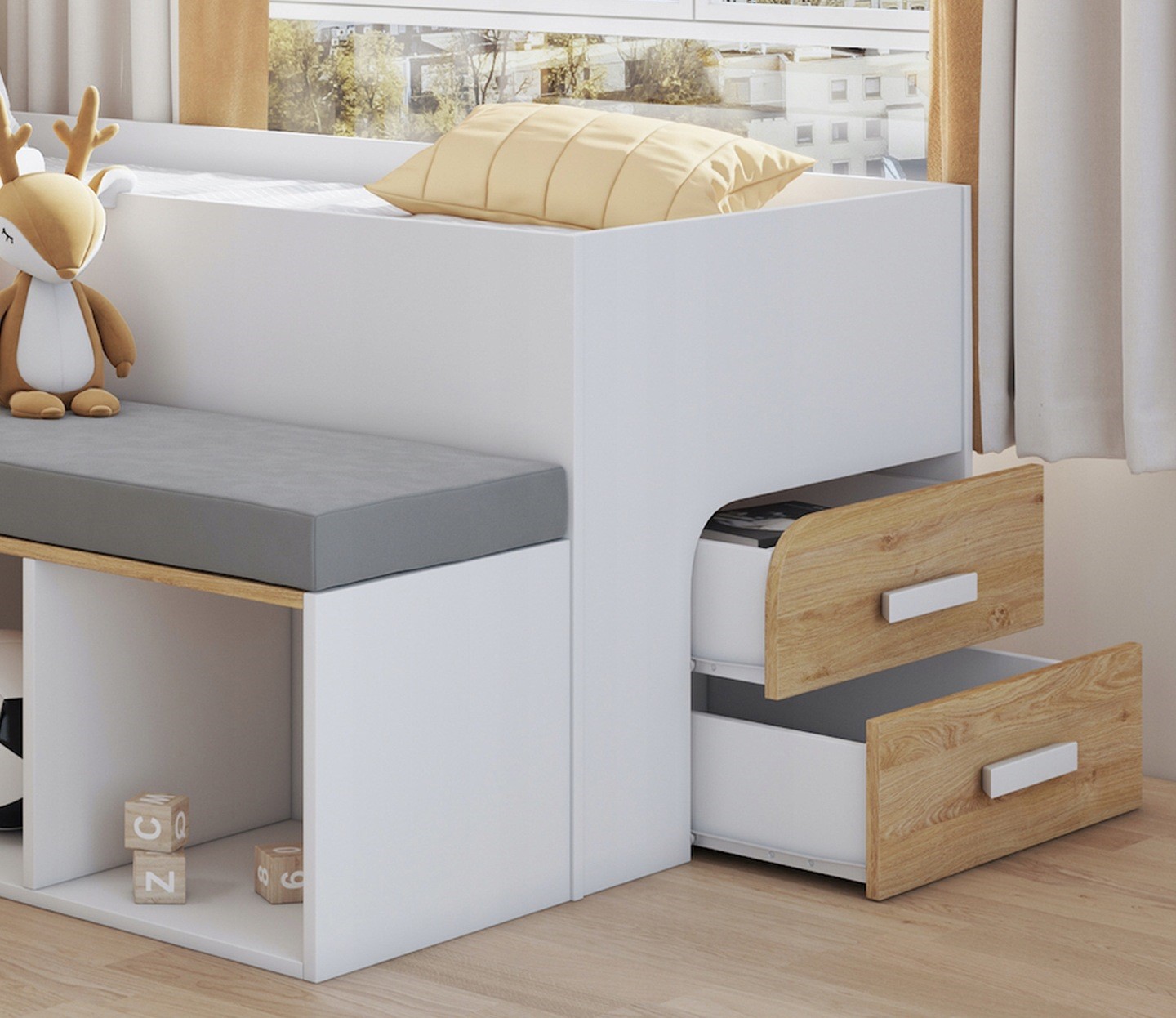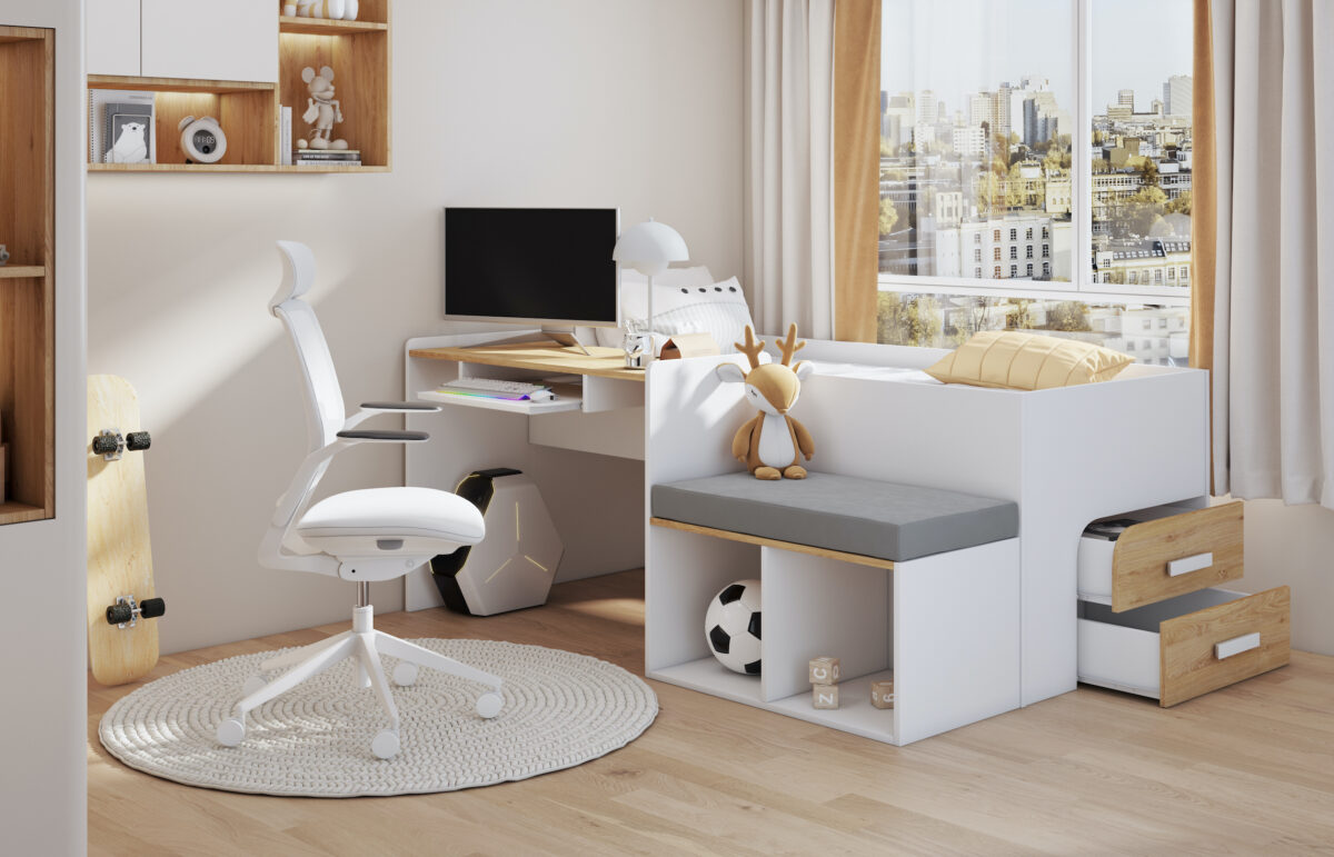 Κρεβάτι Megan με Γραφείο – Συρτάρια – Κάθισμα 90×200cm (Δώρο 10% Έκπτωση στo Στρώμα)