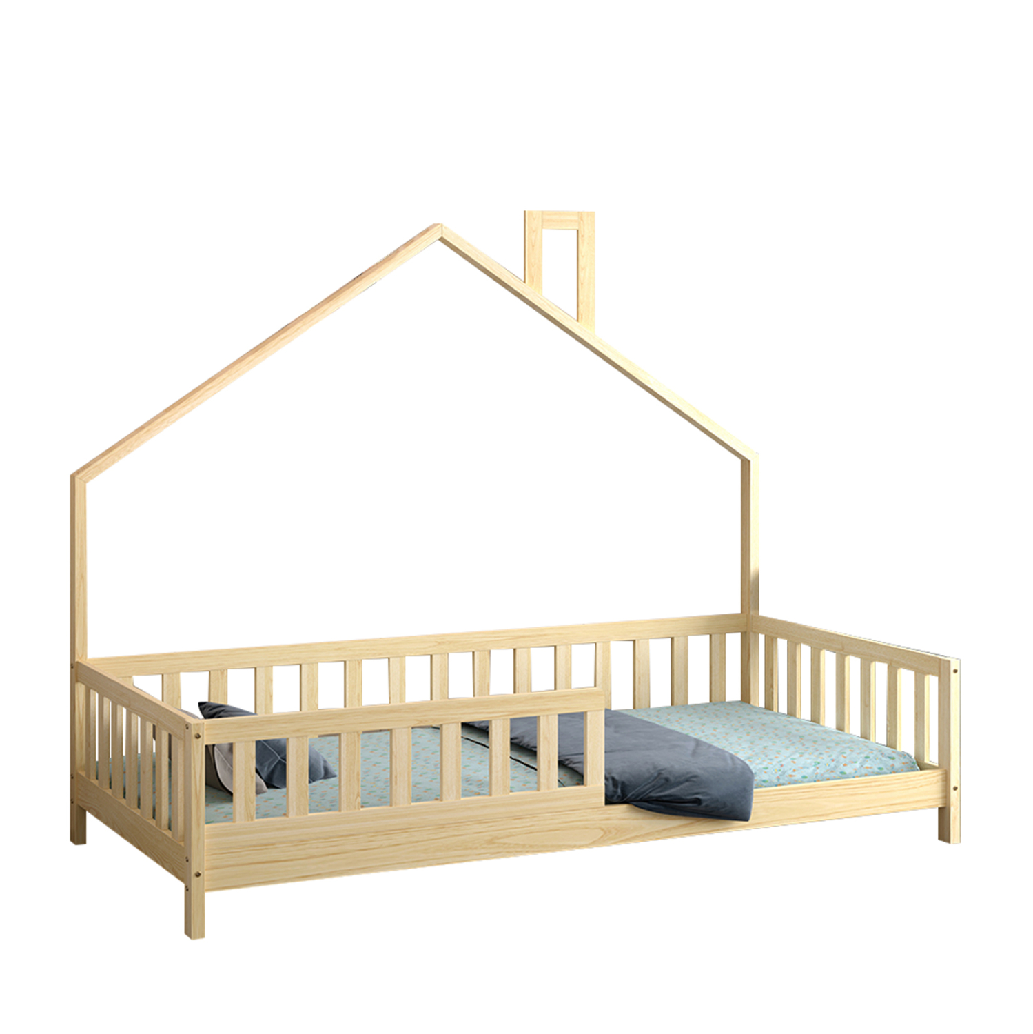 Σας παρουσιάζουμε το καινούργιο παιδικό κρεβάτι Houser. Είναι σε διάσταση για μονό στρώμα 90×190 cm, και αποτελεί μια άριστης ποιότητας, κλασική και ασφαλή επιλογή για το παιδικό δωμάτιο μιας και είναι τύπου Montessori, που σημαίνει ότι έχει σχεδιαστεί σύμφωνα με το εκπαιδευτικό σύστημα Montessori, σύμφωνα με το οποίο τα παιδιά μαθαίνουν καλύτερα, όταν επιλέγουν μόνα τους τι θα κάνουν. Το χαμηλό ύψος κρεβατιού με τα χαμηλά πόδια, βοηθά να εξερευνούν την αυτονομία τους και να ανεβοκατεβαίνουν από το κρεβάτι τους ελεύθερα ανά πάσα στιγμή. Είναι ξύλινο σε ΦΥΣΙΚΟ χρώμα βαμμένο με αβλαβές μη τοξικό βερνίκι με βάση το νερό, ιδανικό για παιδιά. Το στρώμα τοποθετείται σε τάβλες κατασκευασμένες από ξυλεία κόντρα πλακέ. Η μία πλευρά του κρεβατιού έχει την φιγούρα σπιτιού με καμινάδα που θα δώσει μια ευχάριστη, «ζεστή», και παιχνιδιάρικη όψη σε κάθε παιδικό δωμάτιο, ενώ διαθέτει κάγκελα περιμετρικά.