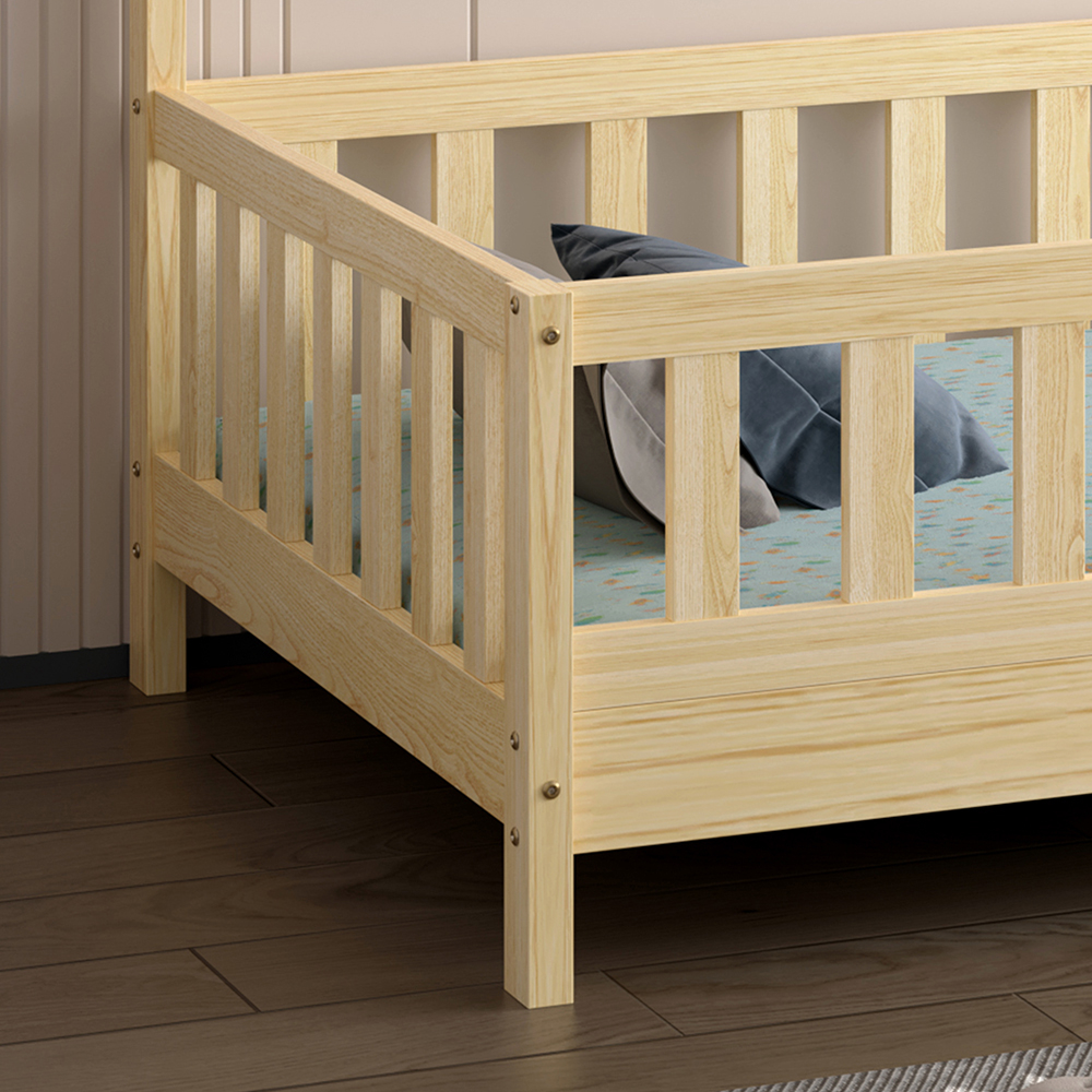 Κρεβάτι Montessori με Κάγκελα Houser από μασίφ ξύλο Natural 90×190cm (Δώρο 10% Έκπτωση στο Στρώμα)