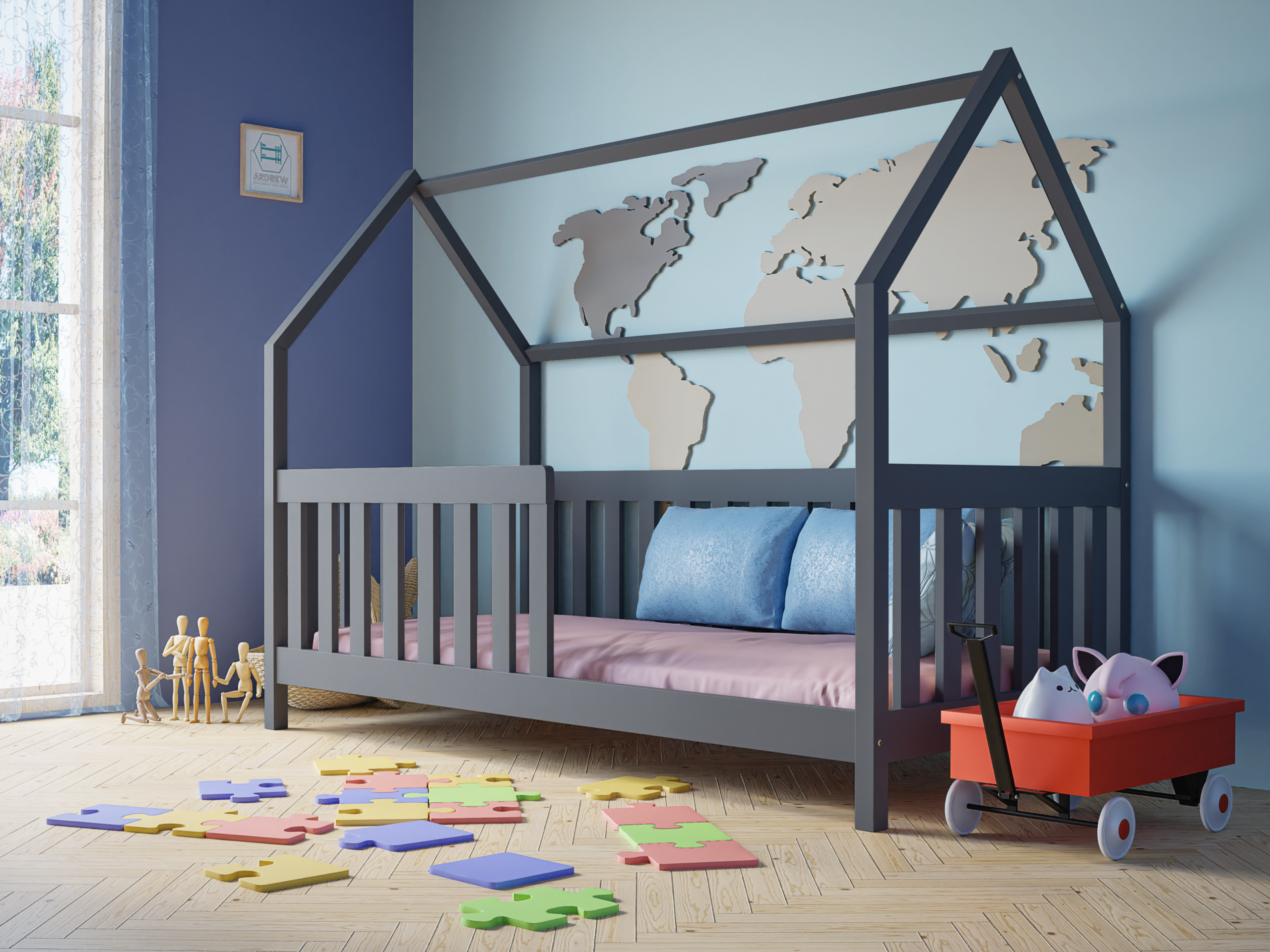Κρεβάτι Montessori Σπιτάκι Ania House από μασίφ ξύλο Graphite 90×200cm (Δώρο 10% Έκπτωση στo Στρώμα)