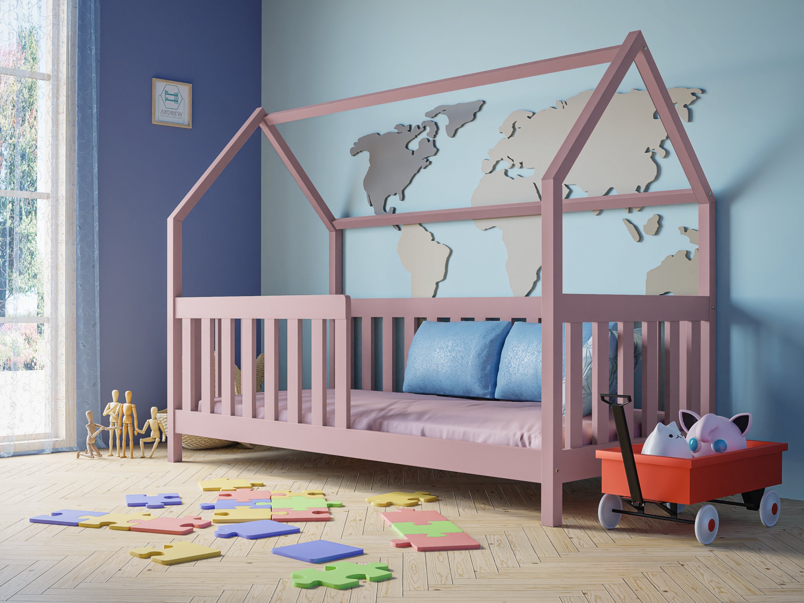 Κρεβάτι Montessori Σπιτάκι Ania House από μασίφ ξύλο Pink 90×200cm (Δώρο 10% Έκπτωση στo Στρώμα)