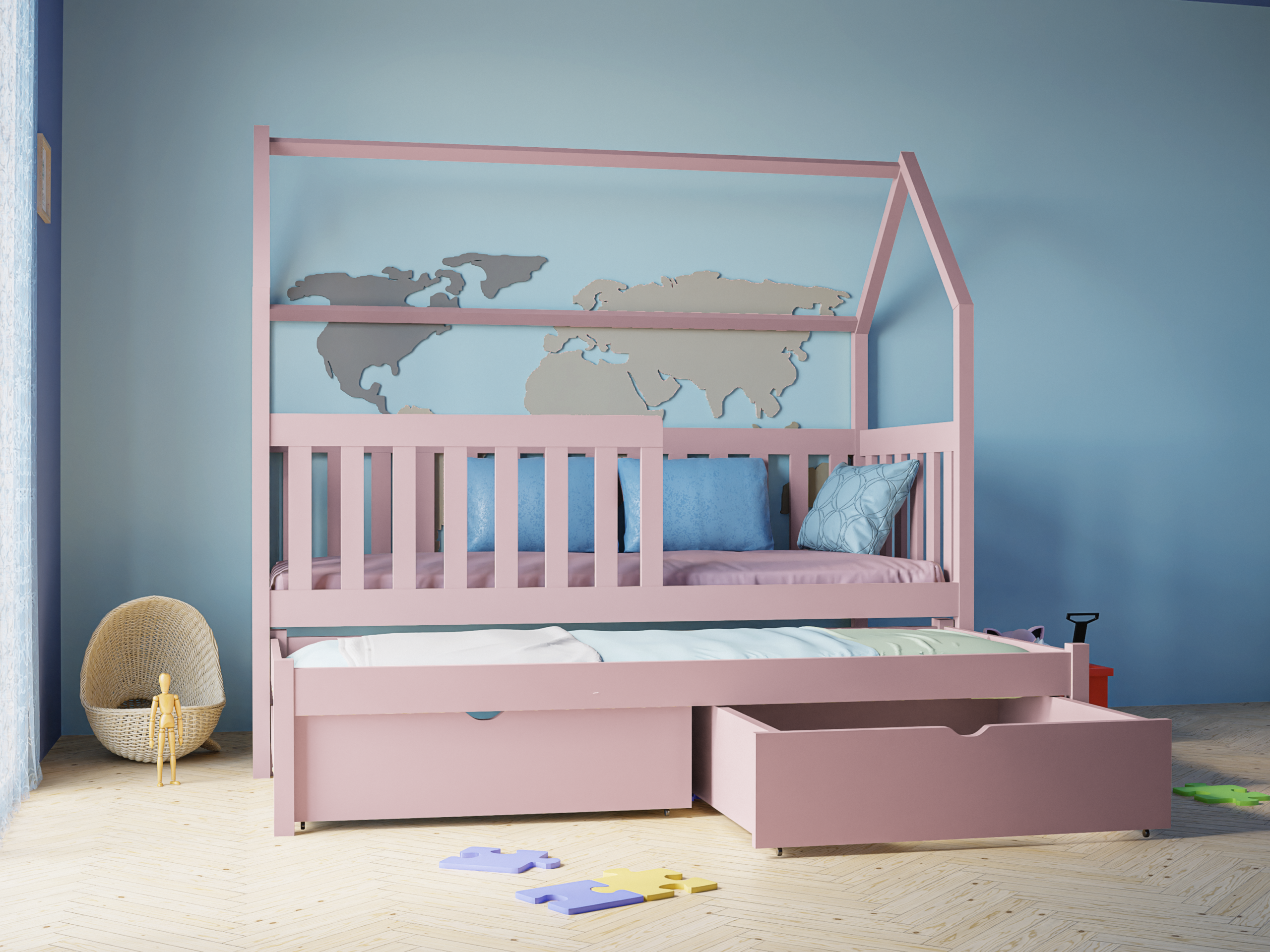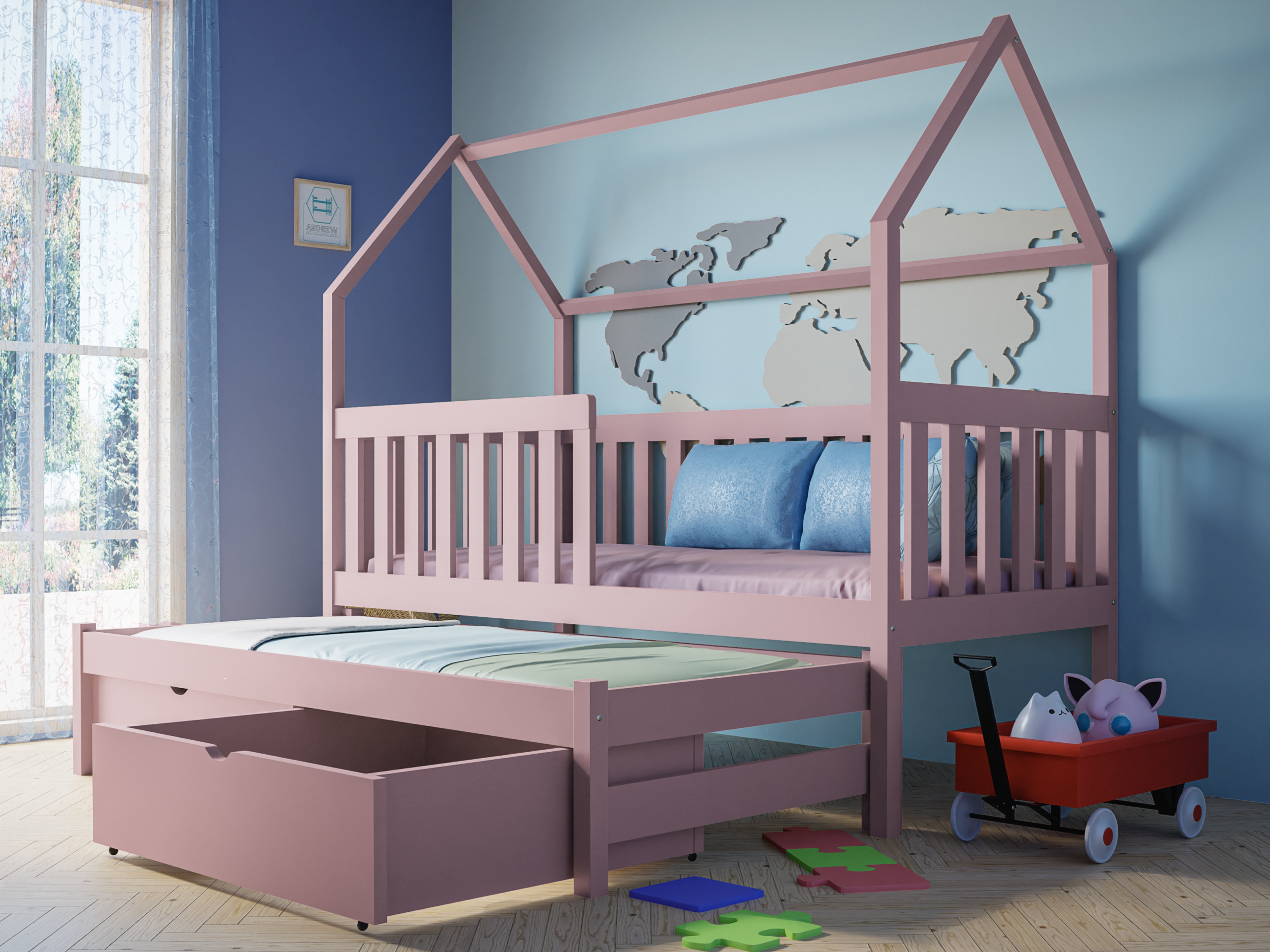 Κρεβάτι Σπιτάκι Ania House με Συρόμενο από μασίφ ξύλο Pink 90×200cm (Δώρο 10% Έκπτωση στo Στρώμα)