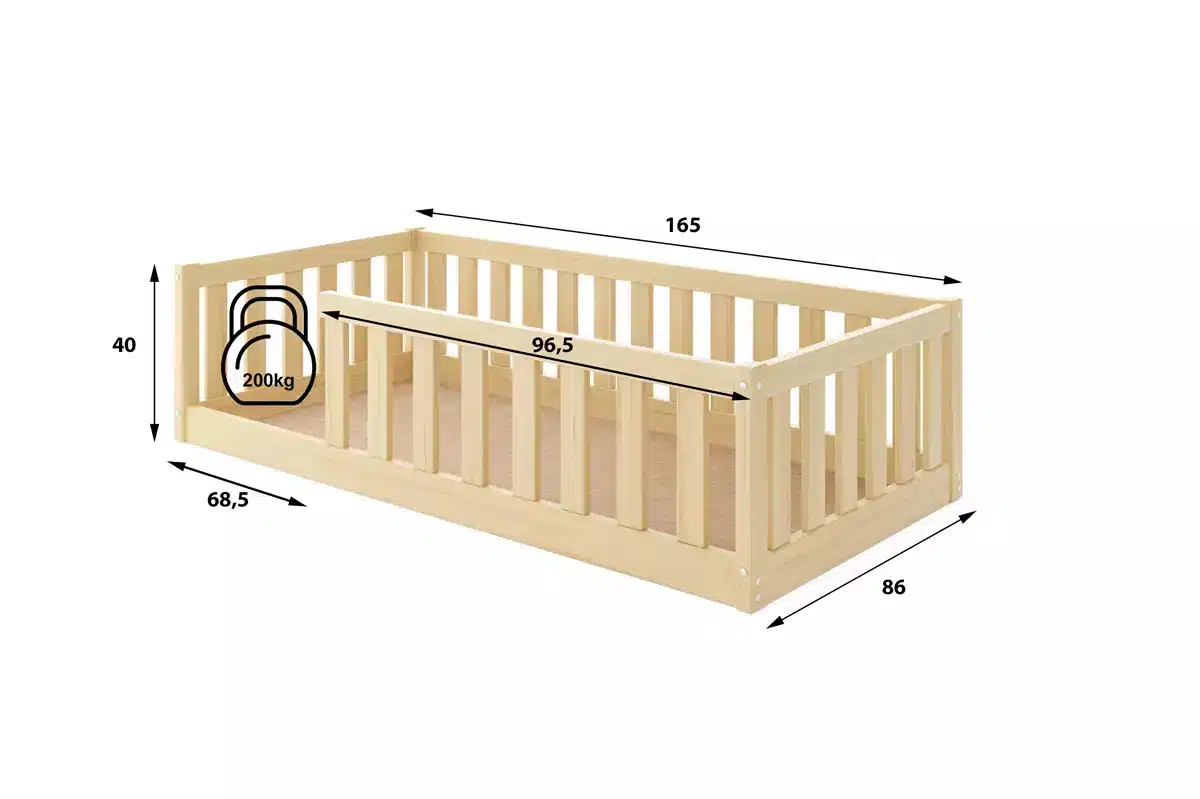 Το χαμηλό Montessori κρεβάτι Bella Sima δημιουργεί ένα ασφαλές και φιλικό περιβάλλον ύπνου, καθώς επιτρέπει στο παιδί να μπαίνει και να βγαίνει από το κρεβάτι χωρίς βοήθεια. Παράλληλα, ο χαμηλός σχεδιασμός ενισχύει την ανεξαρτησία και καλλιεργεί την αυτοπεποίθηση από τα πρώτα χρόνια.