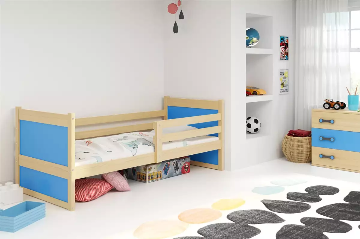 Κρεβάτι Rico Natural & Blue με Συρτάρι & Στρώμα 90×200cm