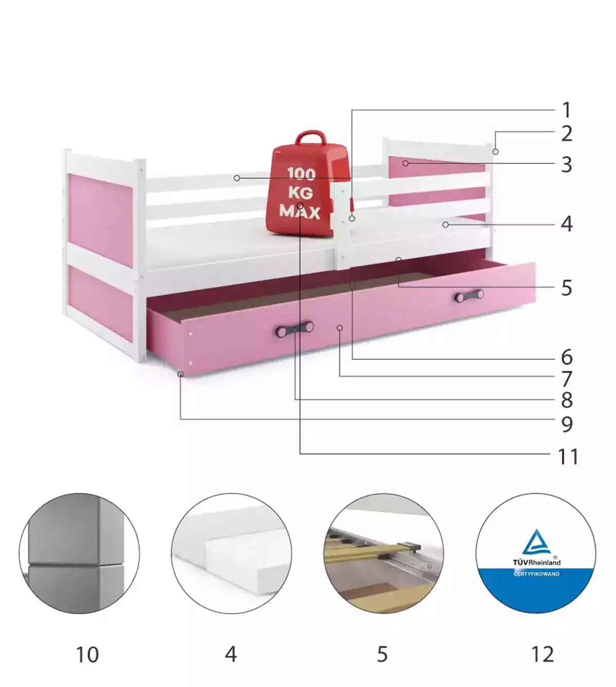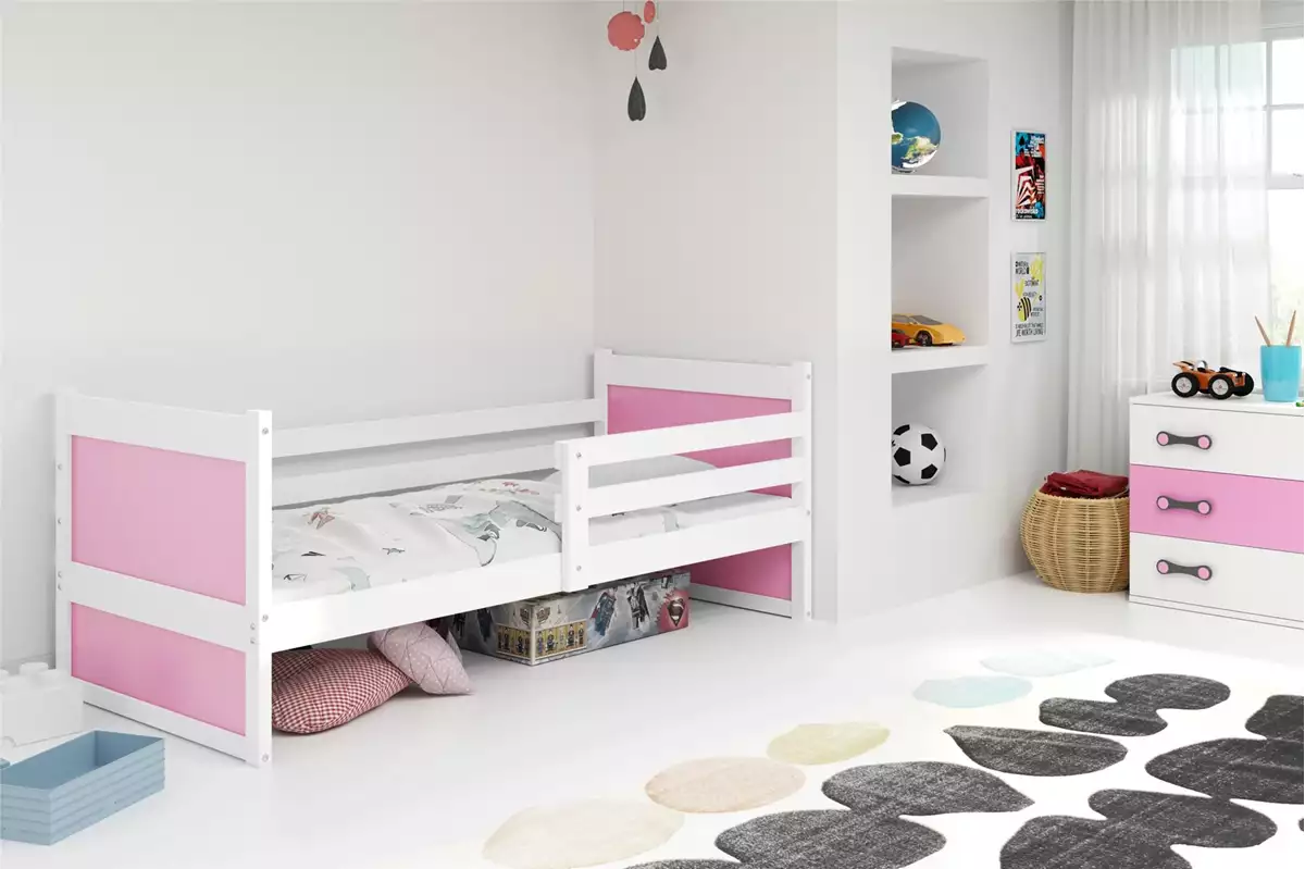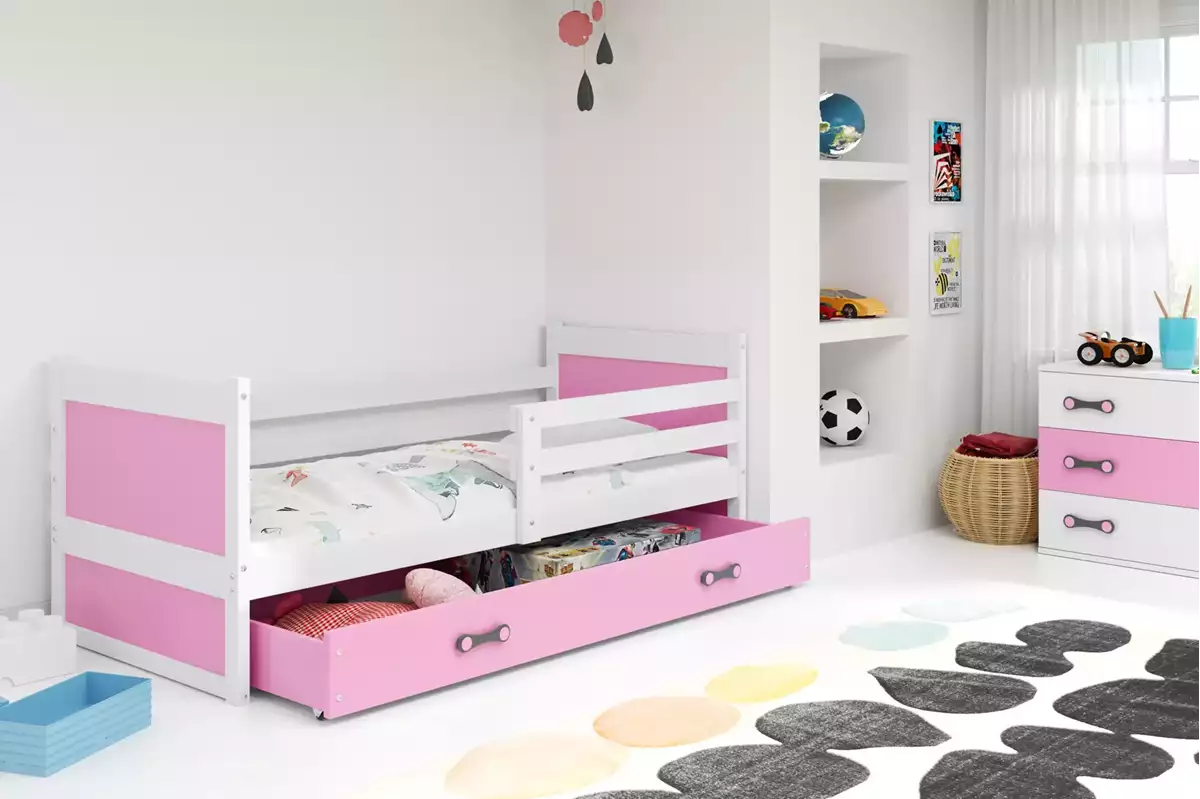 Κρεβάτι Rico White & Pink με Συρτάρι & Στρώμα 90×200cm