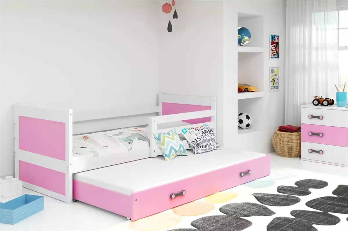 Το Κρεβάτι Rico White & Pink 90×200 με Συρτάρι Αποθήκευσης ή Ύπνου συνδυάζει λειτουργικότητα και διαχρονικό σχεδιασμό, ενώ παράλληλα προσφέρει πρακτική λύση οργάνωσης για παιδικό, εφηβικό ή και φιλοξενούμενο δωμάτιο.