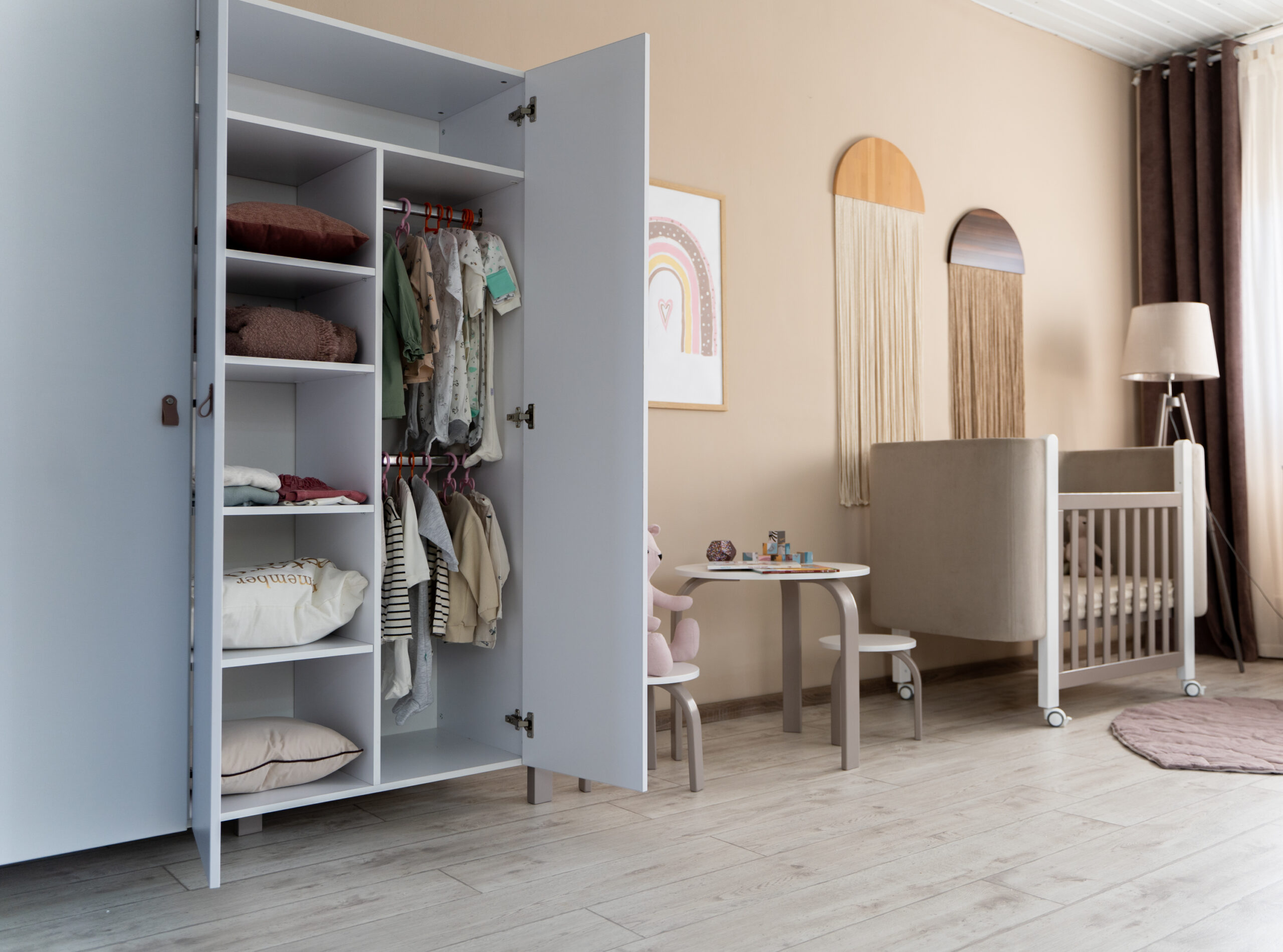 Μέσα στην ντουλάπα, θα βρείτε ράφια, μπάρες για κάθετη αποθήκευση ρούχων και συρτάρια που ανοίγουν προς τα έξω, εξασφαλίζοντας εύκολη πρόσβαση σε όλα τα αντικείμενα. Η προσεγμένη διαρρύθμιση ενθαρρύνει την ανεξαρτησία του παιδιού σας, επιτρέποντάς του να οργανώνει και να έχει πρόσβαση στα αντικείμενά του με άνεση.