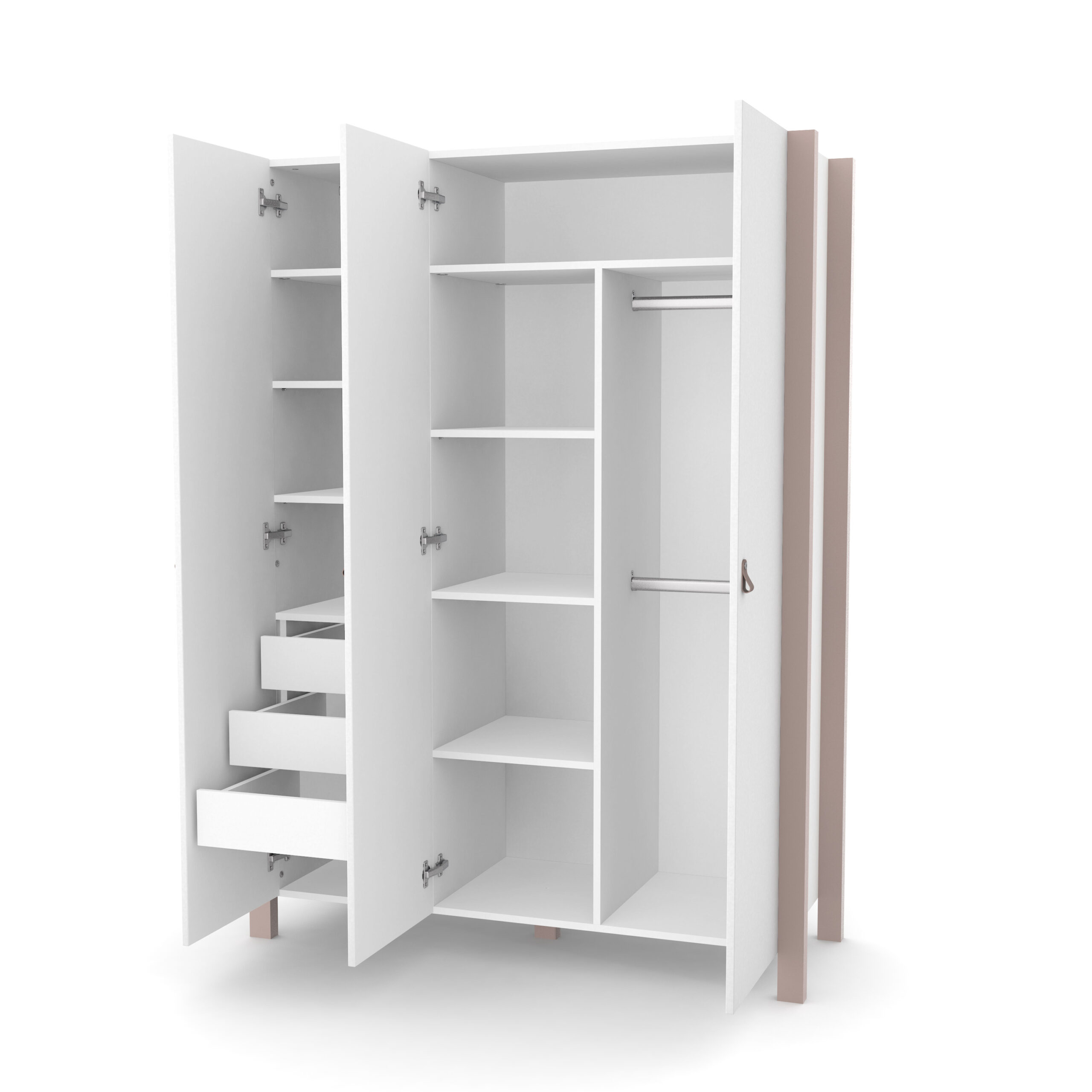 Η παιδική Τρίφυλλη ντουλάπα Veres Monaco είναι η ιδανική λύση για την αποθήκευση των αντικειμένων του παιδιού σας. Με την ευρύχωρη διαμόρφωσή της με τις τρεις πόρτες, αυτή η ντουλάπα παρέχει άφθονο χώρο για βρεφικά ρούχα, κλινοσκεπάσματα, παιχνίδια, πάνες και πολλά άλλα. Η καλά μελετημένη εσωτερική της διαρρύθμιση, με ράφια, μπάρες ρούχων και συρτάρια που ανοίγουν προς τα έξω, διασφαλίζει ότι όλα τα απαραίτητα αντικείμενα του παιδιού σας είναι τακτοποιημένα και εύκολα προσβάσιμα.
