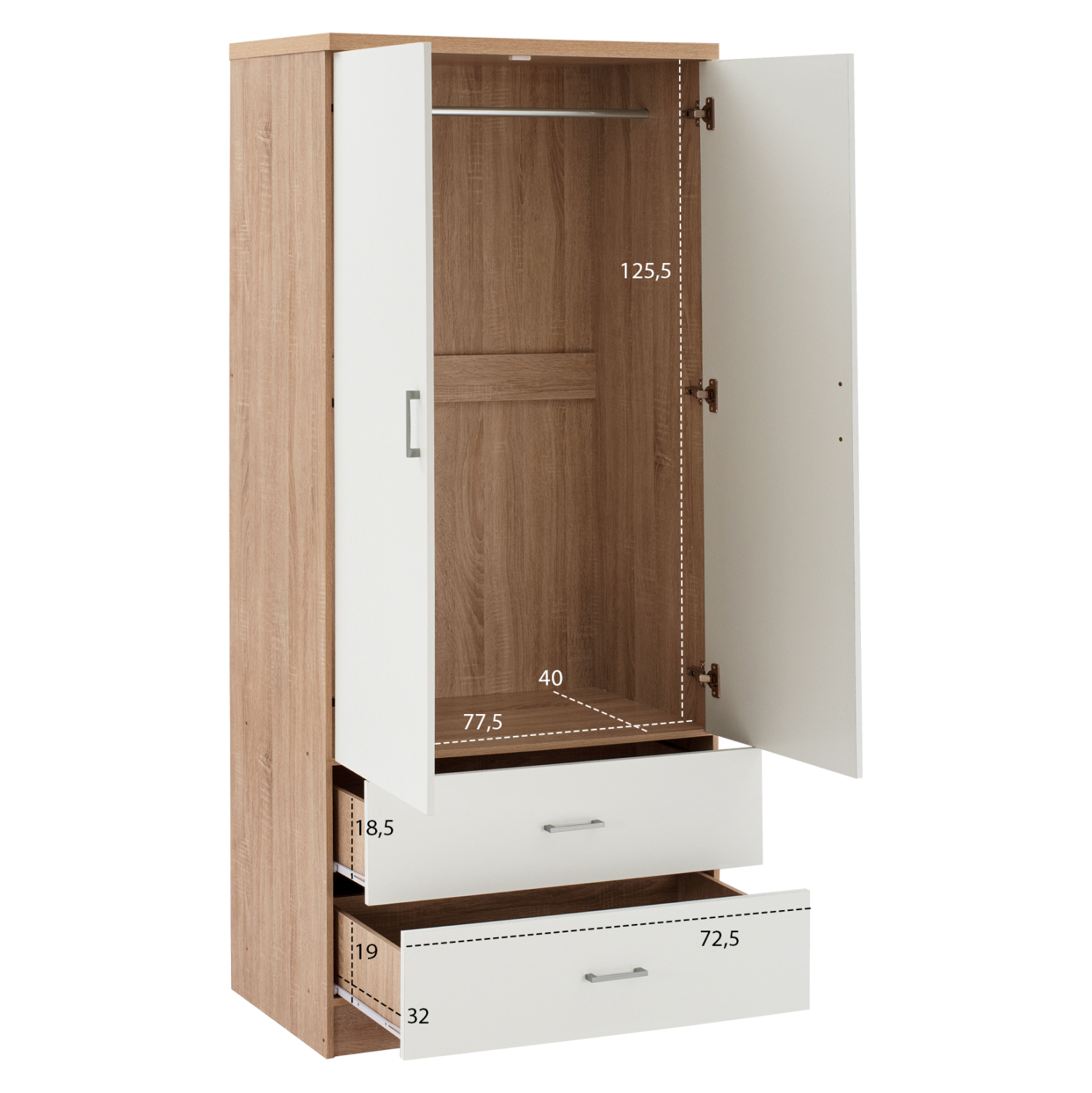 - Διαστάσεις ντουλάπας: 77,5x40x125,5 cm