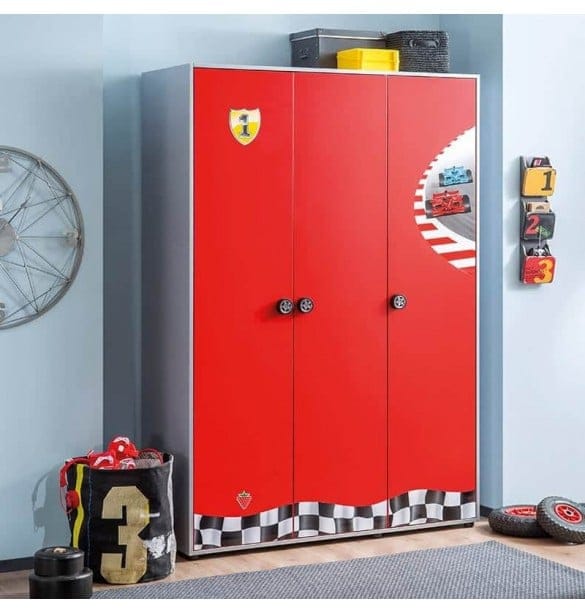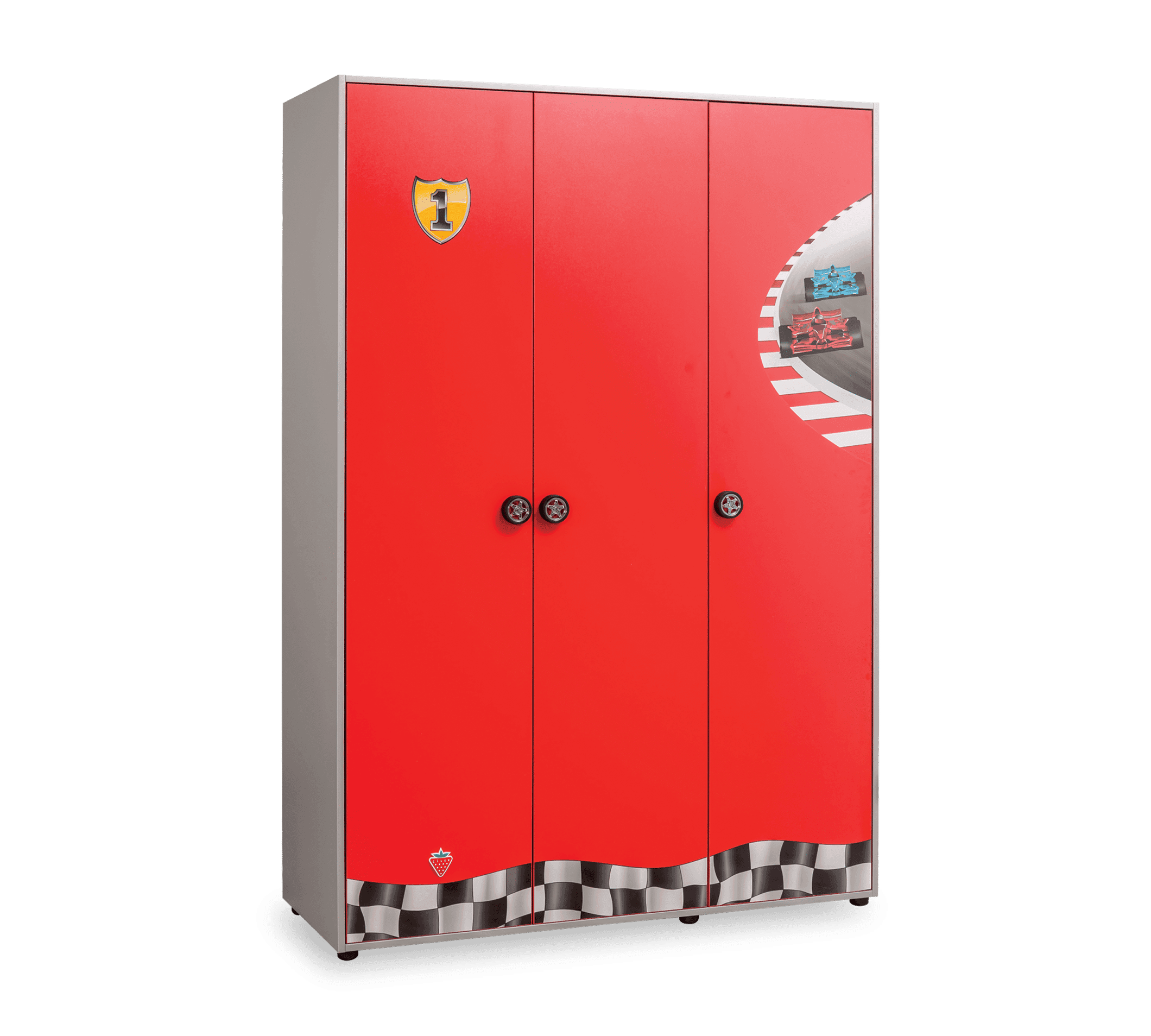 Η παιδική ντουλάπα αυτοκίνητα τρίφυλλη είναι ένα εντυπωσιακό έπιπλο που ταιριάζει ιδανικά σε ένα θεματικό παιδικό δωμάτιο εμπνευσμένο από τον κόσμο των σπορ αυτοκινήτων. Ο σχεδιασμός της με θέμα τα αγωνιστικά αυτοκίνητα δημιουργεί έναν δυναμικό και ιδιαίτερο χώρο που εντυπωσιάζει κάθε παιδί.