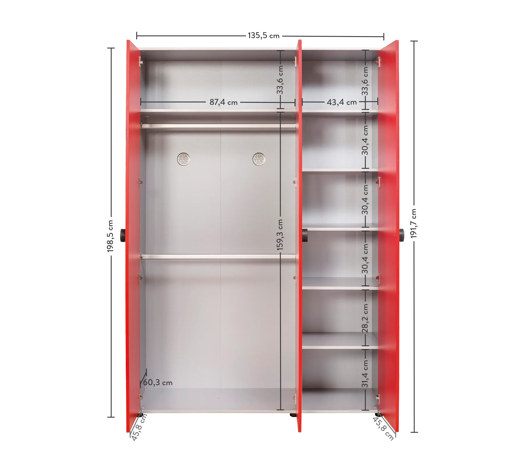 Η τρίφυλλη κατασκευή της προσφέρει μεγάλο αποθηκευτικό χώρο για ρούχα, παιχνίδια και προσωπικά αντικείμενα του παιδιού, βοηθώντας να διατηρείται το δωμάτιο οργανωμένο και τακτοποιημένο.