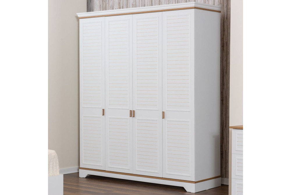 Τετράφυλλη ντουλάπα Lofter με άνετους αποθηκευτικούς χώρους, πολλά ράφια και ράγες για το κρέμασμα το ρούχων. Λειτουργική ντουλάπα, που ξεχωρίζει για τον λιτό σχεδιασμό της και τις ιδιαίτερες διακοσμητικές της λεπτομέρειες.