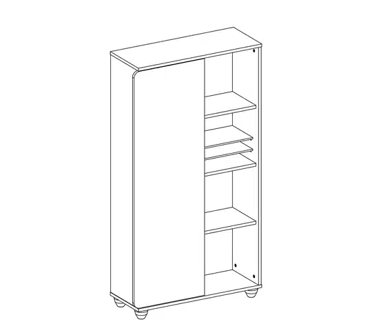 Η παιδική βιβλιοθήκη με ράφια και ντουλάπι αποτελεί μια πρακτική λύση οργάνωσης για το παιδικό δωμάτιο. Διαθέτει ανοιχτά ράφια για βιβλία και διακοσμητικά, καθώς και κλειστό ντουλάπι για την αποθήκευση προσωπικών αντικειμένων.